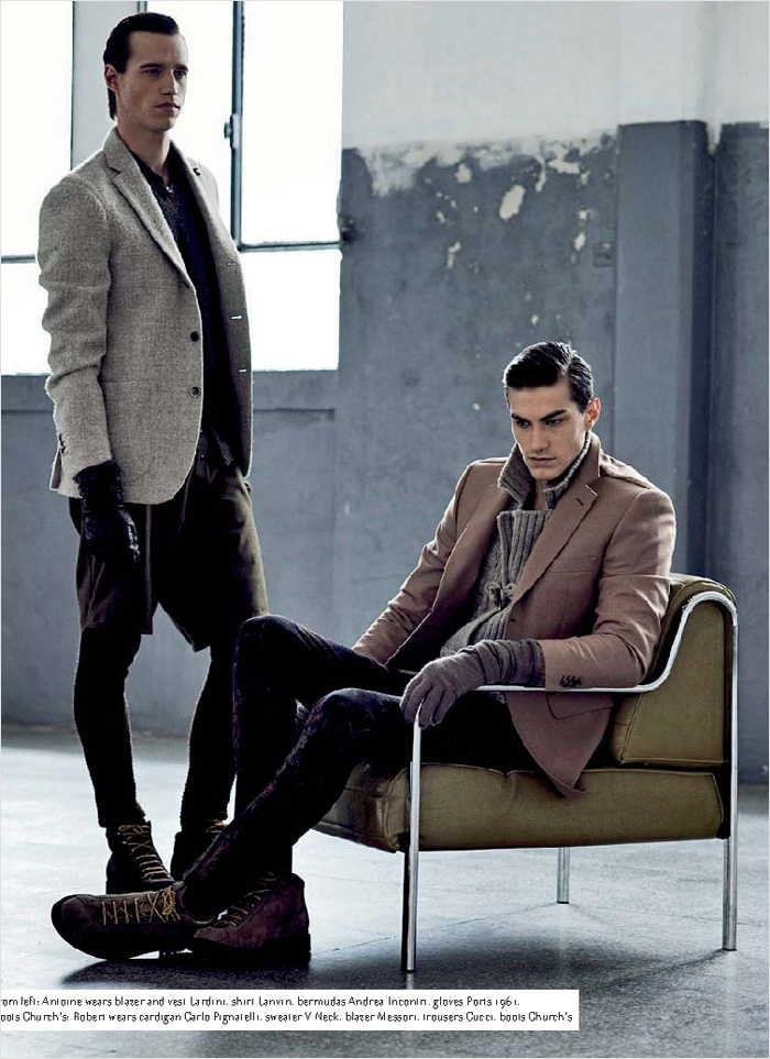 Antoine & Robert at Beatrice models team up for Collezioni Uomo‘s elegant story captured by Markus J. Diyanto with Alessandro Ferrari’s styling. Discover more of the Contemporary Uniform after the jump: