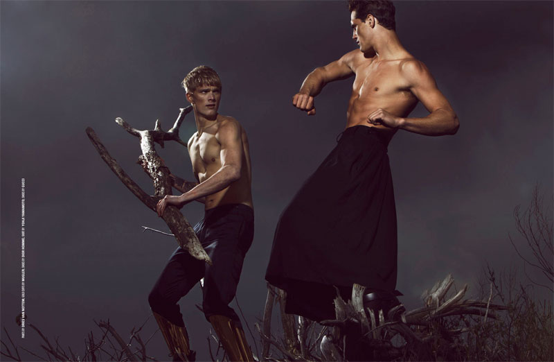 Ollie Edward and Nicklas Kingo shot by Renie Saliba and styled by Katie Burnett with pieces from the likes of Yhoji Yamamoto, Alexander McQueen, Givenchy and more, forDSection‘s fourth issue.