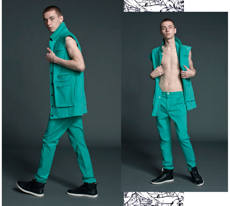 난 바쁜, 너무 바빠 (Im busy, too busy) is the Los Vladimirovich new collection for Spring/Summer 2013 with Yuri Pleskun. (I’m Busy) is a collection, that reflects his own name, basic and casual garments easy to wear but with discrete details, created for the life of modern man. Composed mostly of jackets, the collection has the purpose of being used without thinking much, pieces that work and function into any man’s wardrobe. Basic pieces with a twist, to make a difference. Asian-inspired traditional uniforms (Korea), reflected in folds, as well as plank and tucks . The colors of the collection reflect the 4 seasons , the concept come from asian food , that should have one color that represent any 4 season into the food , so we applicate this concept into our collection, because it doesn’t matter if is spring or summer , we have days like we lived in winter or autumn.