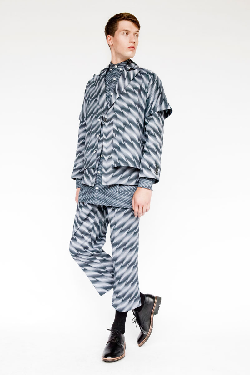 MariusPetrus is a new menswear label by designer Marius Op ‘t Eynde, based in Antwerp. MariusPetrus brings strong, masculine collections, with sharp shapes, bold colours and fully ‘in-house’ designed graphic prints. Classical tailoring elements, with a modern signature, merging seamlessly with sportswear influences and high tech materials, creating an interesting blend of men’s heritage and future concepts. The Spring/Summer 2013 Collection, titled ‘Flux’ (A state of constant change), is inspired by the idea of a boy growing up, becoming a man.