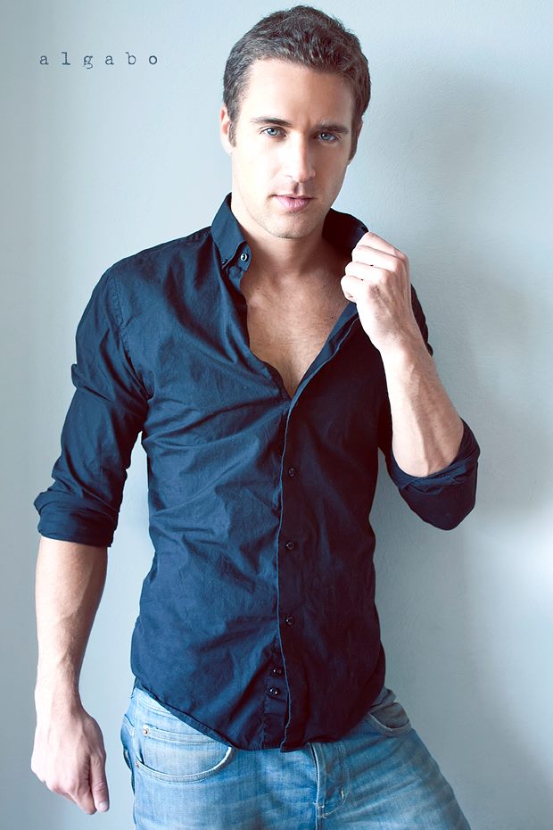 Daniel Aleksić black and white fashion portrait by Ferran Casanova in Barcelona studio