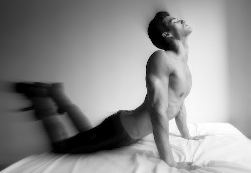 Daniel Aleksić black and white fashion portrait by Ferran Casanova in Barcelona studio