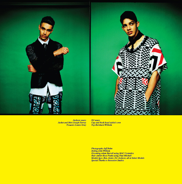 Photographer Jeff Hahn captures the showstopping GB Youth series for the 7th edition of Client magazine with styling by John Williams. Starring in the shoot are Select Models Igor Stepanov, Ben Palmer, Jester, DJ and Jackson.
