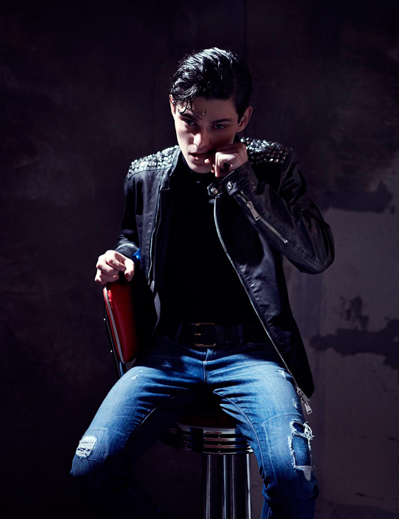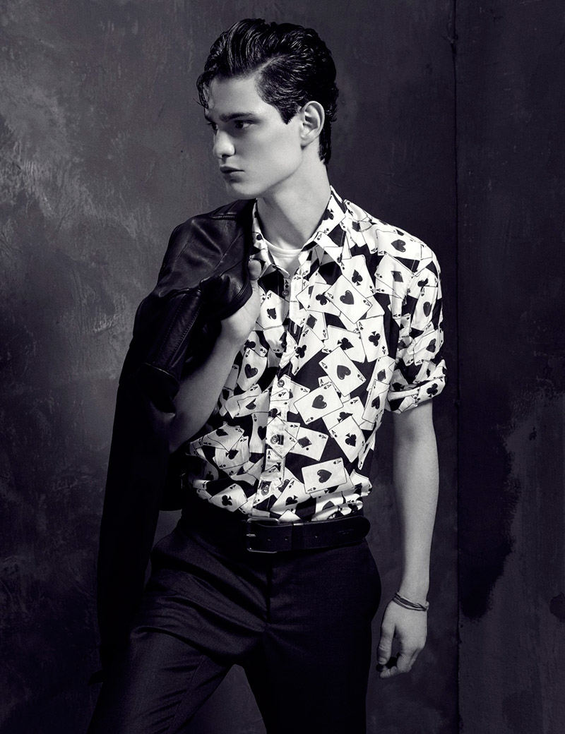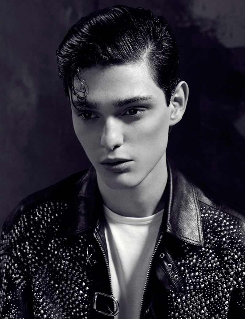 Daniel Aleksić black and white fashion portrait by Ferran Casanova in Barcelona studio