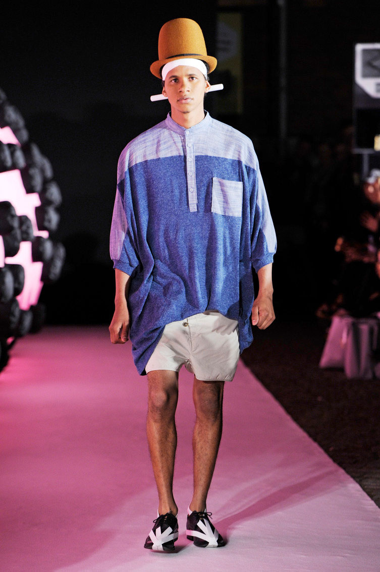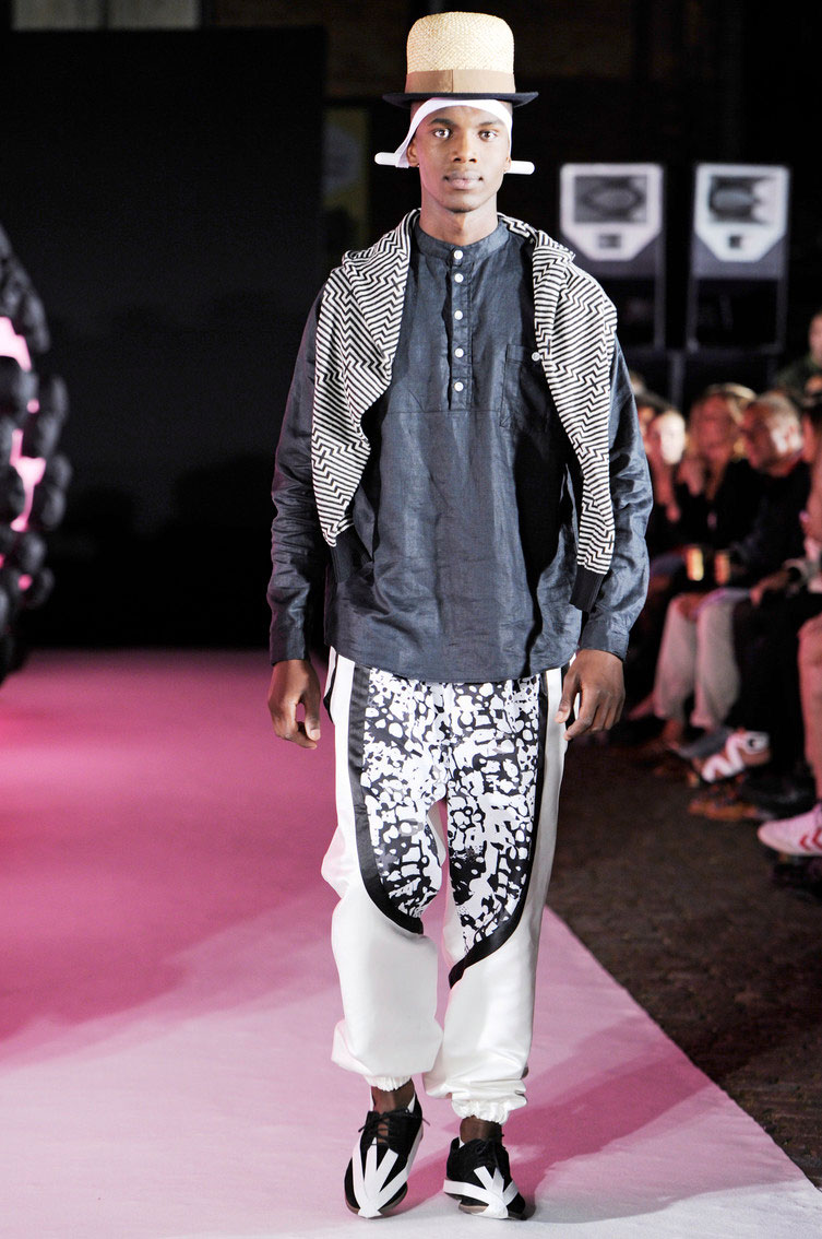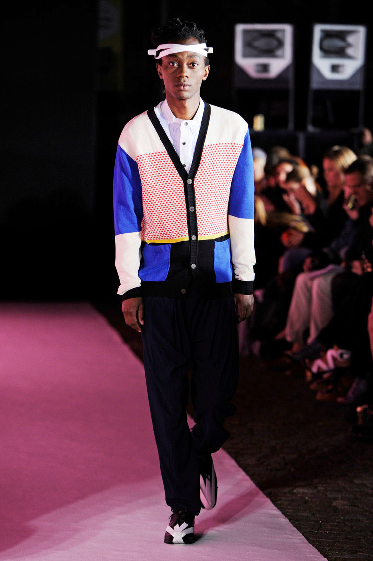 Words by Didder Rønlund I fell head over heels for all Henrik Vibskov‘s quirks and curious ideas – indeed, for the entire energy and atmosphere of the collection, inside Carlsberg’s large bottling hall. And yet again, I fell for the man himself, and his stone face as he shuffled in, and took his bow. That is, what it is called, when the designers enter the podium, after the finale, and receive their applause. I saw men in many kinds of trousers and even more colours, girls who did not hold back, and everyone wearing the same odd shoes, which probably could achieve some health labelling. Some of Vibskov’s distinctive hats, with a tall, round crown, actually cheered you up. Use them with anything, even with a nice fur coat, if you have one. A special addition to this – plus vests, jackets, backpacks, shirts, dresses and blouses in provocative congestion – was Henrik’s sharp eye for commercial clothing, for stores and target groups, who neither want to own tailor-made suits or ties. You need a formidable talent to contain all that. And Henrik Vibskov has that talent.
