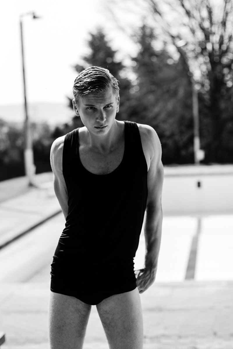 Reynier Shields (at Boss Models) in a photo story entitled “FORM”. Photographed by Steve Marais in a disused Johannesburg swimming pool and styled by fashion blogger Marco Riekstins for Man of the Cloth.
