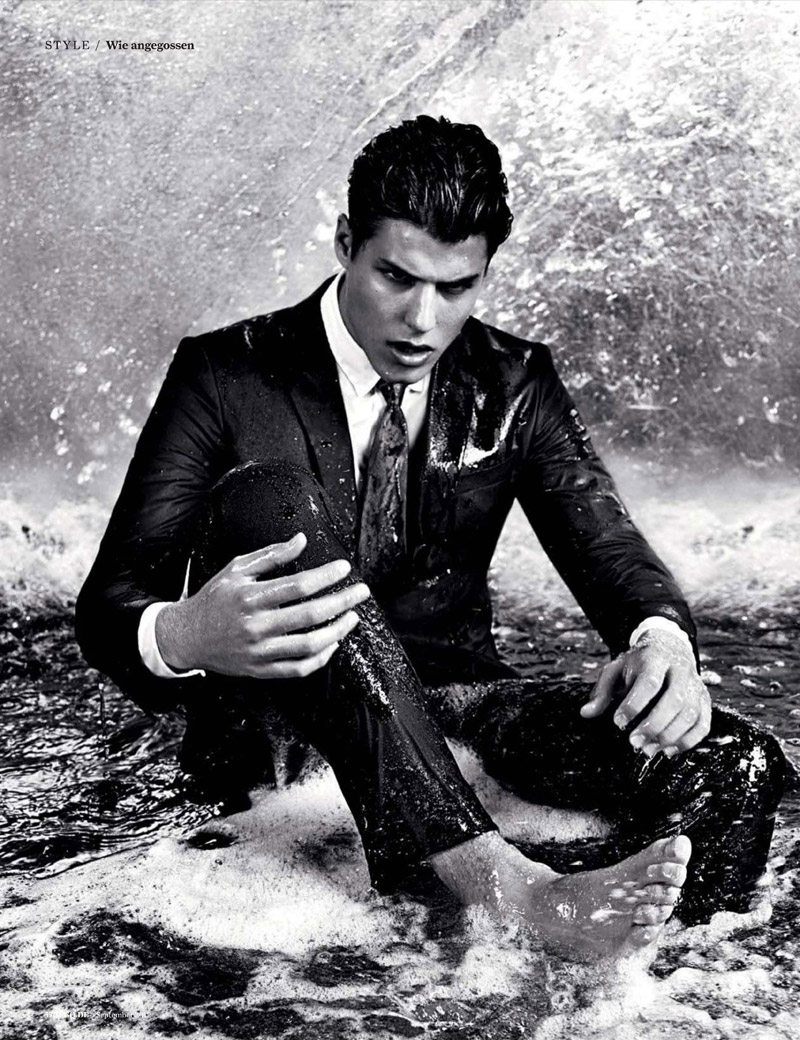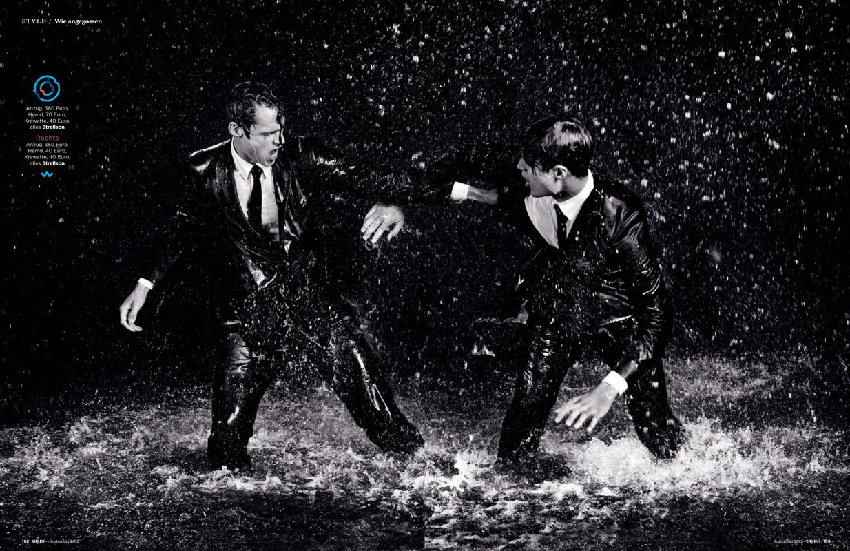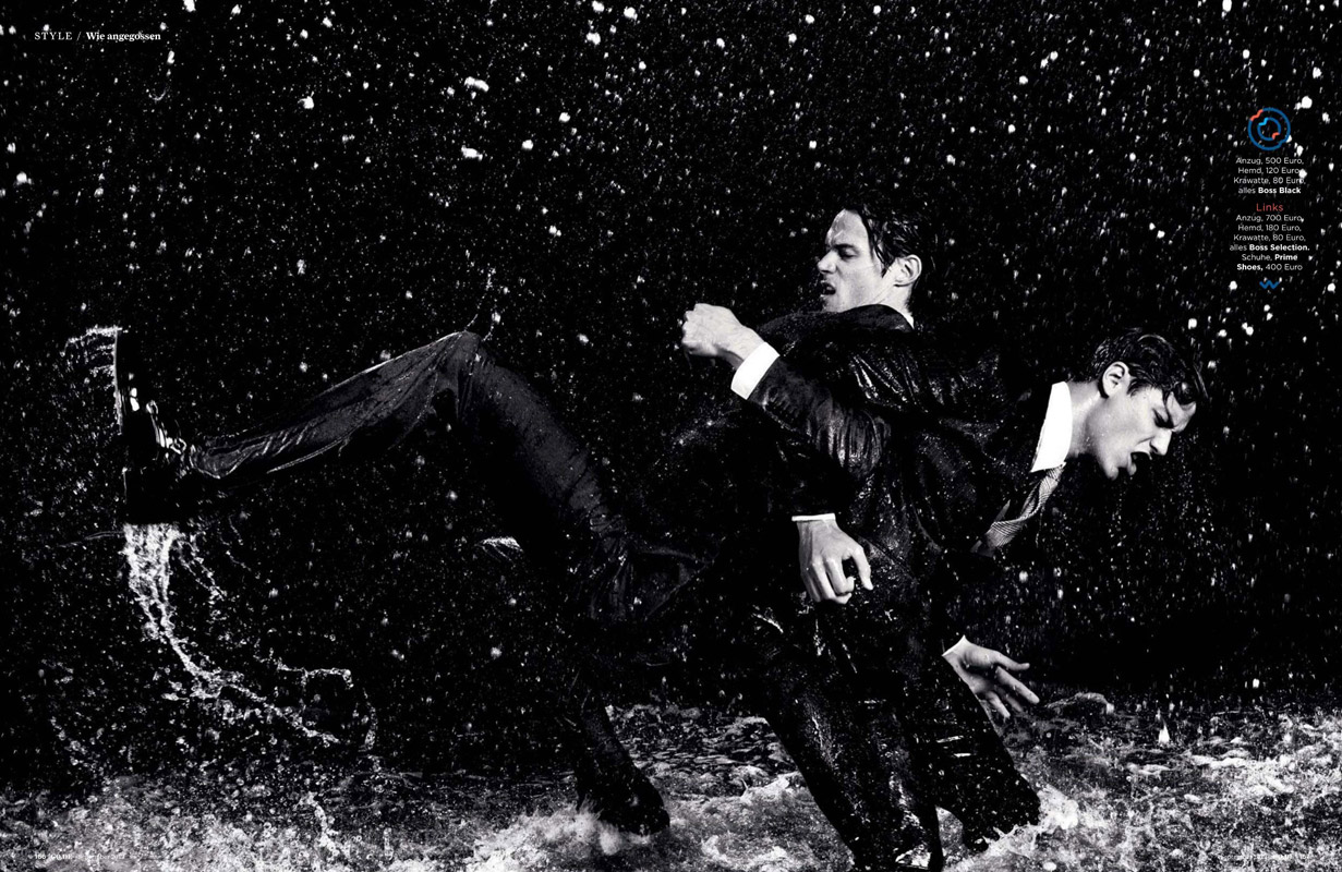 Striking models Emilio Flores and Mat Godron connect for the dynamic Wie Angegossen story captured by Jem Mitchell with Tobias Frericks’ styling for GQ. Mat and Emilo are water-resistant in pieces from Z Zegna, Ralph Lauren, Jil Sander, Prada and Boss to name a few.
