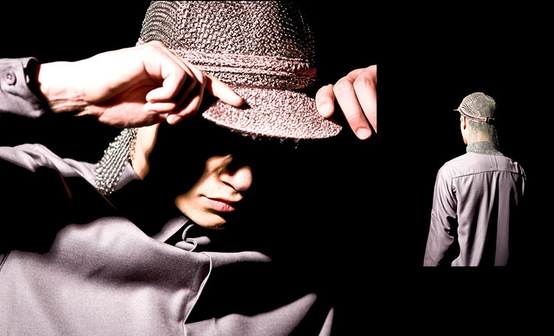 Francesca looked at everything from bare knuckle boxing to danseurs, gang related imagery to warriors. To translate this into something tangible and beautiful she used the principles of tension, strength and sensitivity and translated them into my fabrics. Rich, sumptuous brocades, wool silk mix shirting, textured silks and the key feature of the collection being the use of stainless steel chainmail. The print was developed from Francesca’s own images of the battered, barren landscape flying over Minnesota.