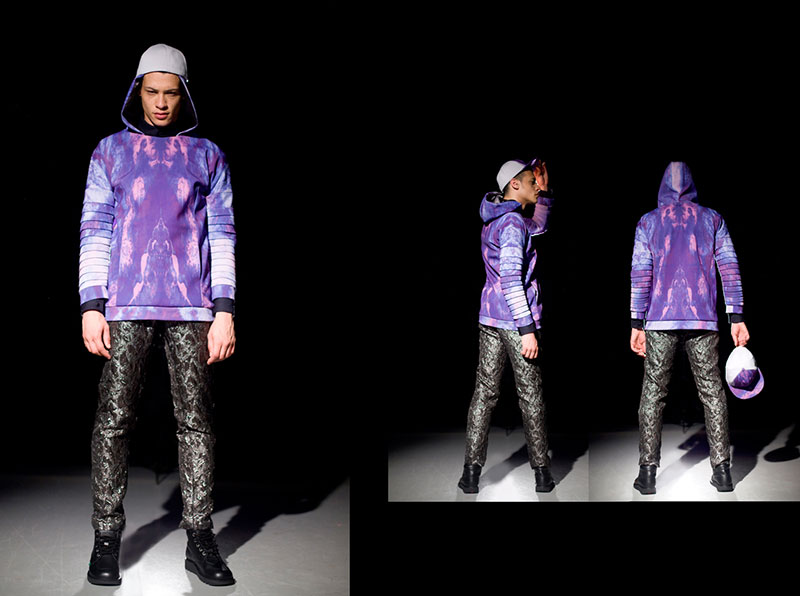 In terms of silhouette, she wanted to mix both tailoring and gang inspired streetwear. Francesca used information and skills that she acquired during her internships at Orchel-Read (London), Jeremy Scott (Los Angeles, CA) and Givenchy (Paris) as well as own design aesthetic to mould the collection.