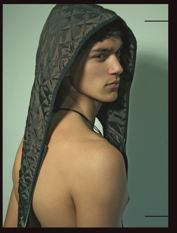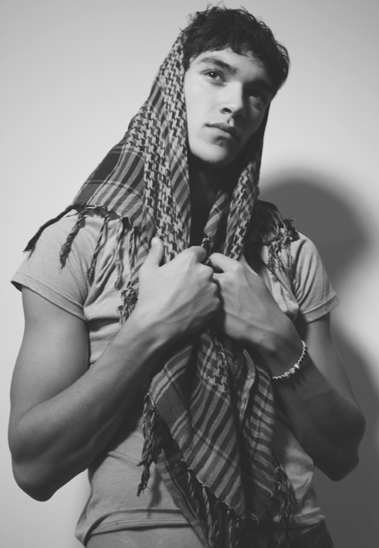 Daniel Aleksić black and white fashion portrait by Ferran Casanova in Barcelona studio
