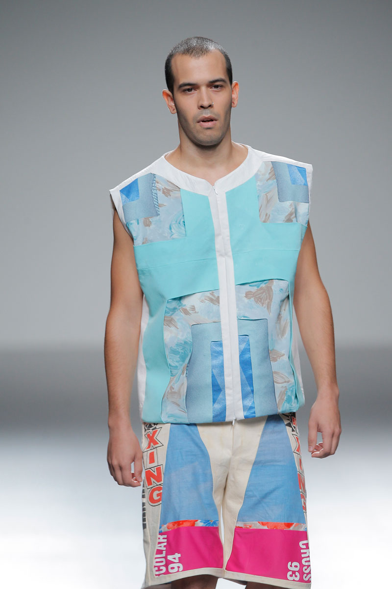 He created a men’s collection whose point of departure consists of clothing items donated by friends and acquaintances. “New Life” is a combinatory experiment in which every stitch establishes an impossible link between eras, persons, styles and functions. Re-usable materials become souvenirs of a rhizomatic network of affections and the clothing items acquire new life through an architecture of broken lines and poetic volumes. In times of unemployment, economic crisis, junk bonds, fear, disillusion, impotence and uncertainty, Ruizgalán proposes an ecology of style and reaffirms fashion’s capacity to generate bright architectures and future projects.