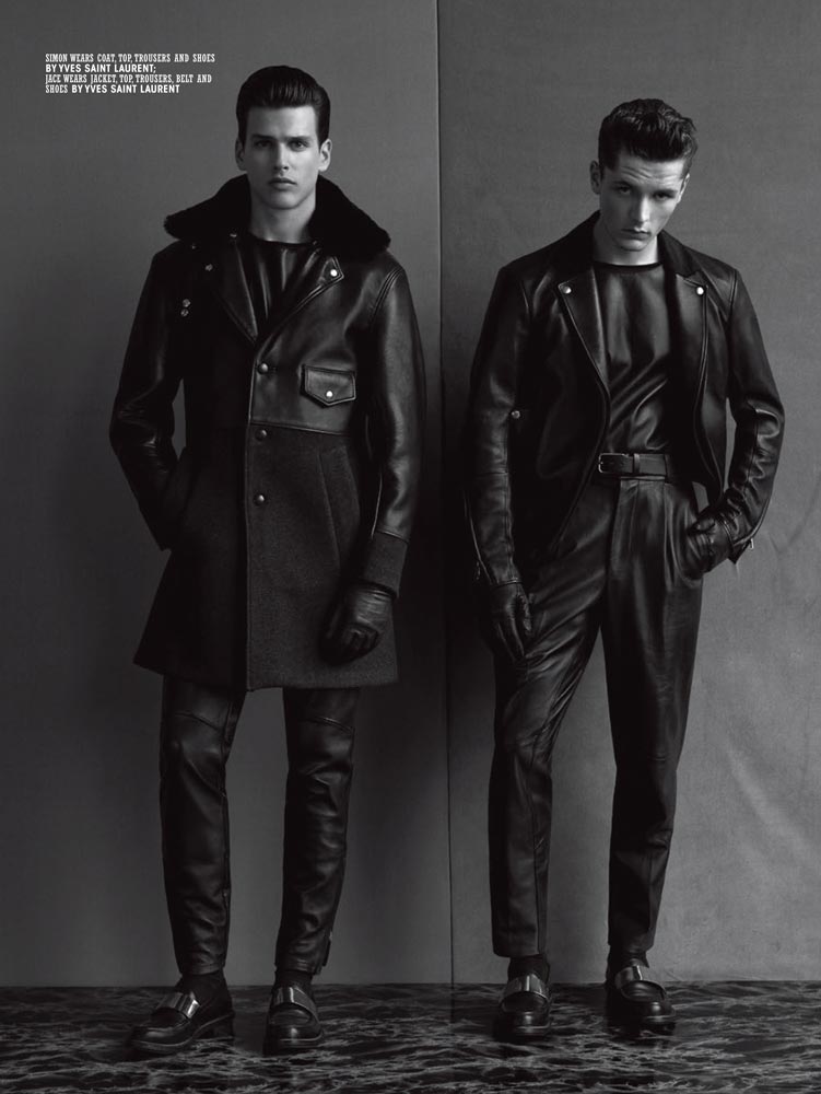 Jace Moody and Simon Van Meervenne shot by Andreas Larsson and outfitted by Garth Spencer with pieces from Yves Saint Laurent, Ports 1961, Dsquared2, Lanvin and more, for the Fall/Winter 2012 issue of 10 Men.