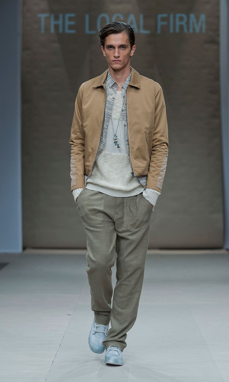 The Spring/Summer 2013 collection of The Local Firm is called TLF Tribe. It draws inspiration from urban club-kids of the European early 90s. Large geometric shapes are in focus, worn with body-hugging Lycra garments in layers. The theme of the prints is telephone doodles and scribbles. A new TLF symbol is present on numerous pieces creating a “tribe” feeling.