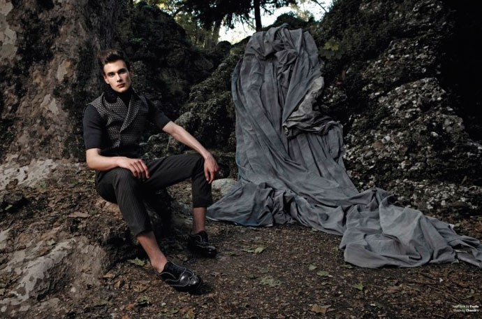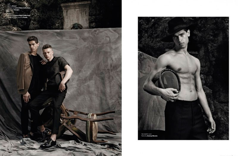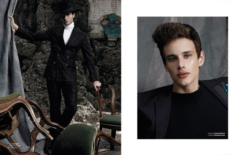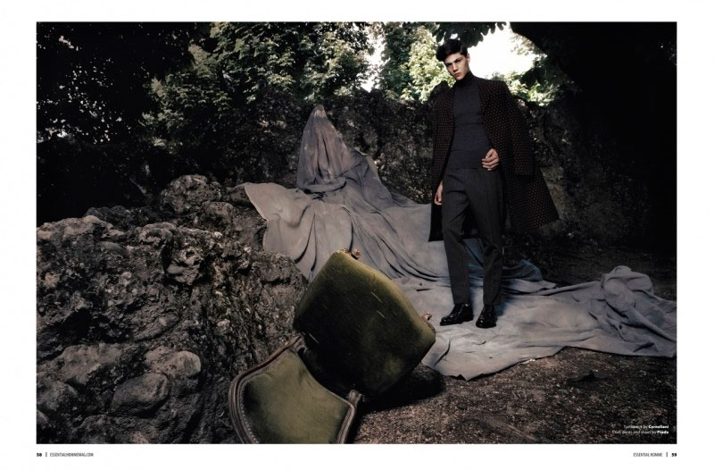 Alessandro Mele, Chris Grib, Fabio Mancini, Riccardo Mora, Samuele Visentin and Simone Nobili, captured by Giovanni Squatriti and styled by Giuseppe Ceccarelli with pieces from Gucci, Bottega Veneta, Prada, Louis Vuitton and more, for Essential Homme.