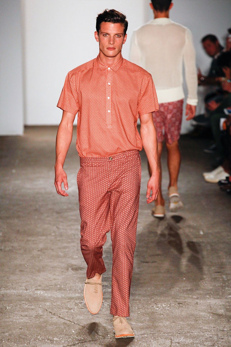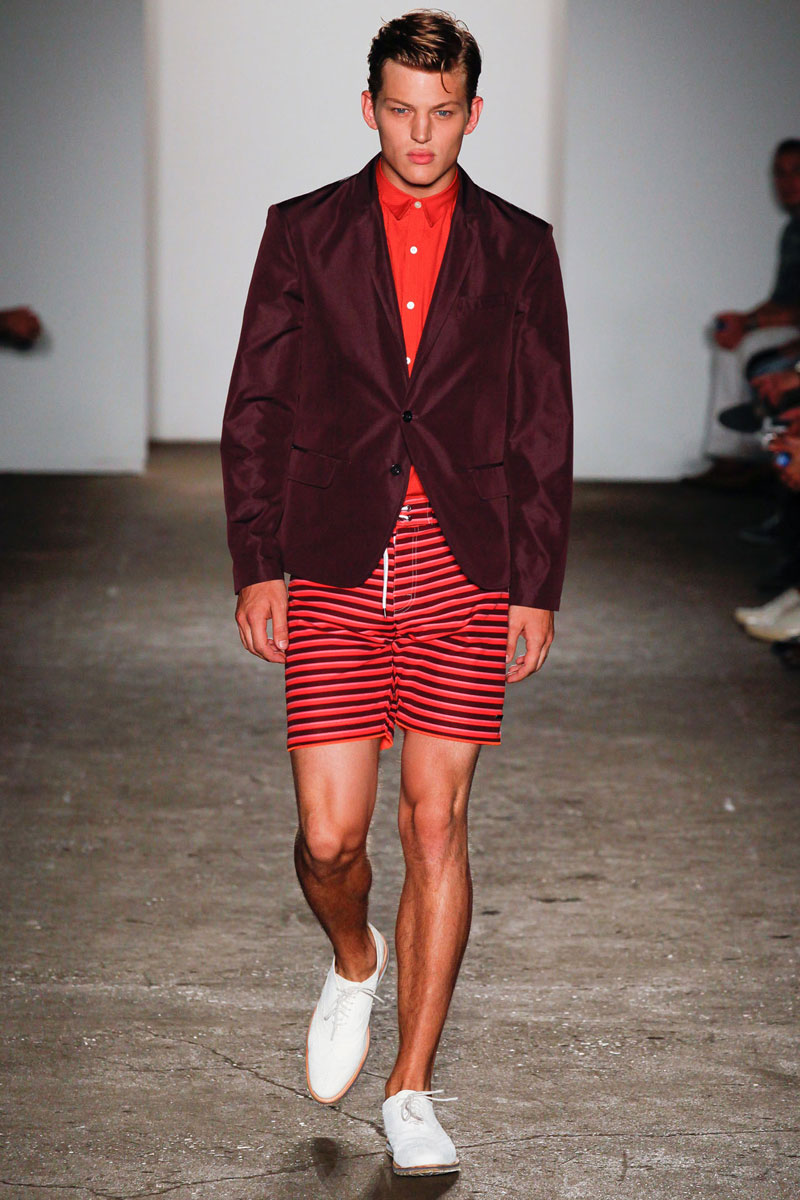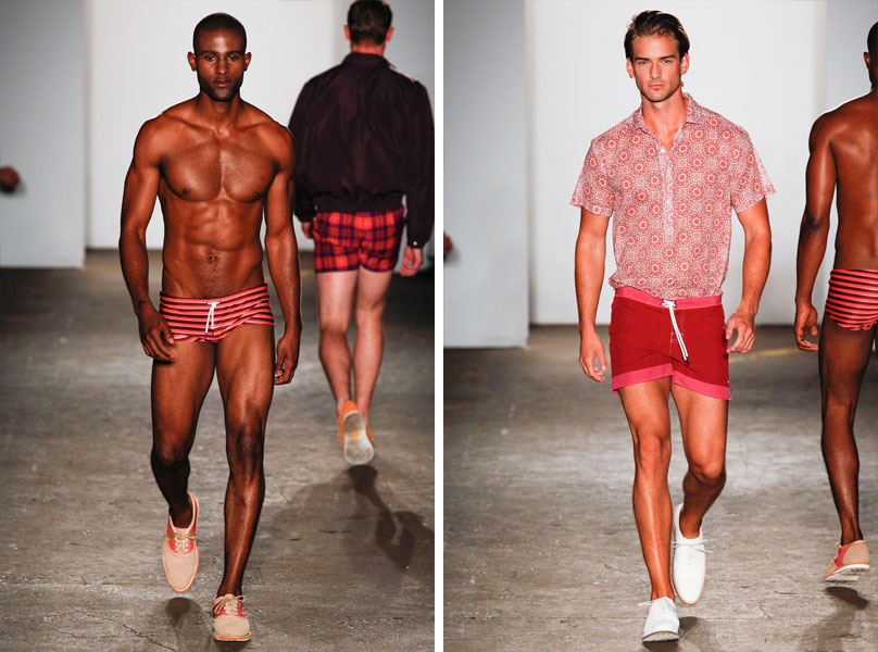 Parke Lutter and Ronen Jehezkel presented a bold and sexy Spring/Summer 2013 collection featuring brightly colored prints in trunks, shorts, lightweight shirts, bathing suits, shirts and blazers.