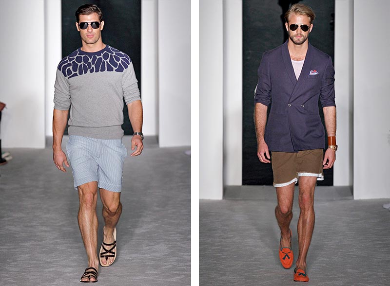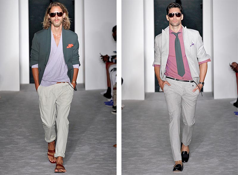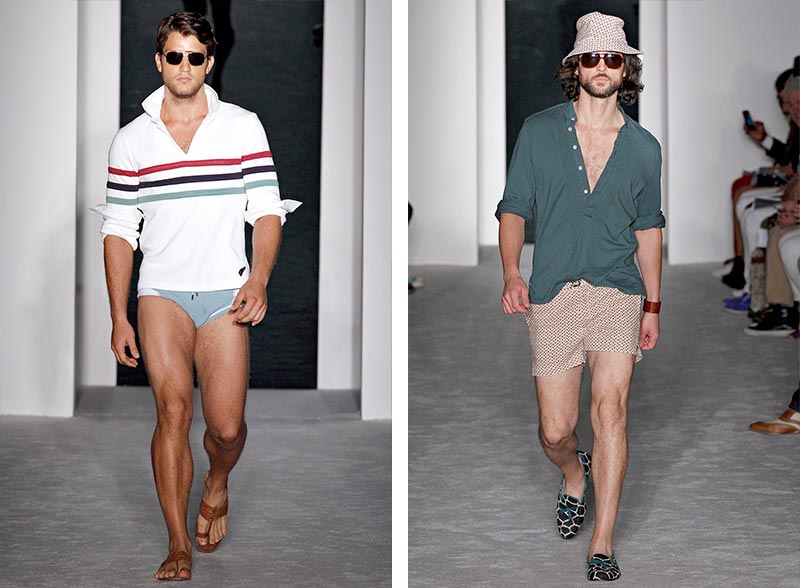 “People try to pigeonhole me as preppy. I don’t feel like I’m preppy at all. There’s a base of that, but there’s a base of that in any American menswear designer. The two poles of American menswear are Ralph Lauren as the superego and Calvin Klein as the id, and I want to start going more toward the id. This collection felt like a big step in scraping preppy off. You talk about American heritage; one of our biggest heritages is sex. I don’t feel like that’s been out there enough.” – said Michael Bastian after the show.
