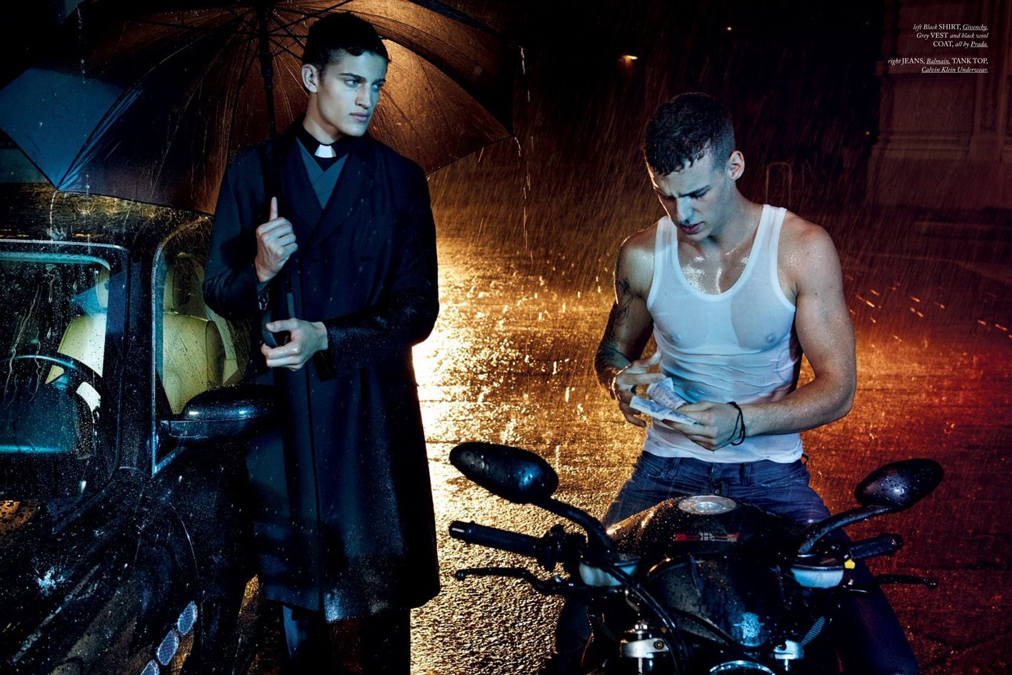 In a powerful black-and-white studio session shot in London, Oliver Orlandini collaborates with acclaimed photographer Kyle Springate in a raw and intimate study of light, form, and masculine elegance.