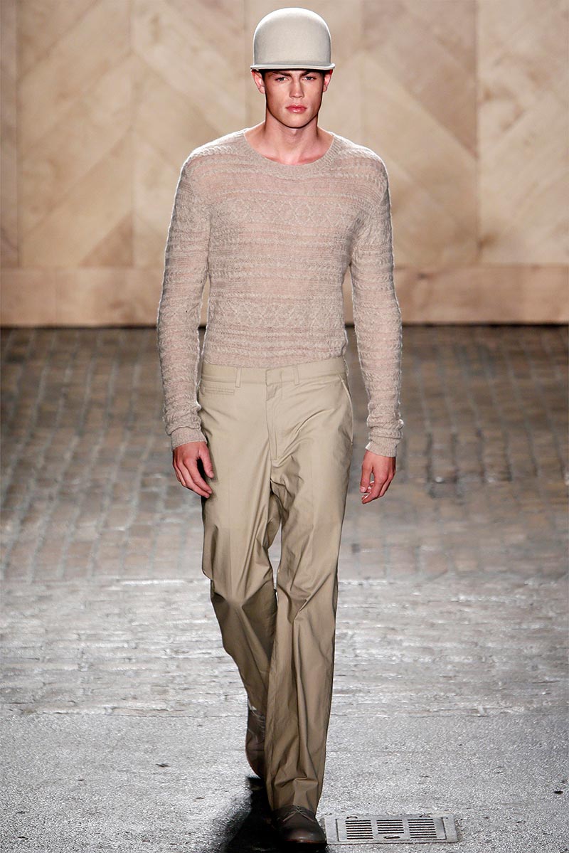 Steven Cox and Daniel Silver from Duckie Brown, presented their Spring/Summer 2013 collection for Perry Ellis, entitled “Fifty Shades of Khaki”, featuring 32 looks based in a neutral color palette.