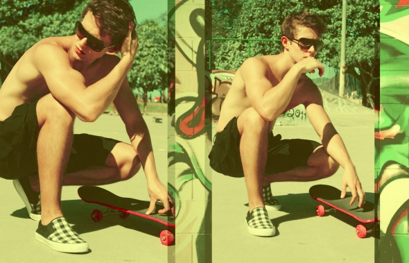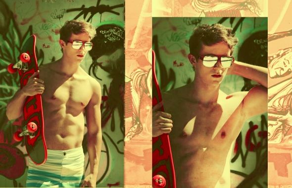 Wonderfully colorful shoot by photographer Carlos Sales featuring stunning Brazilian skateboarder and model, Gabriel Arievilo.