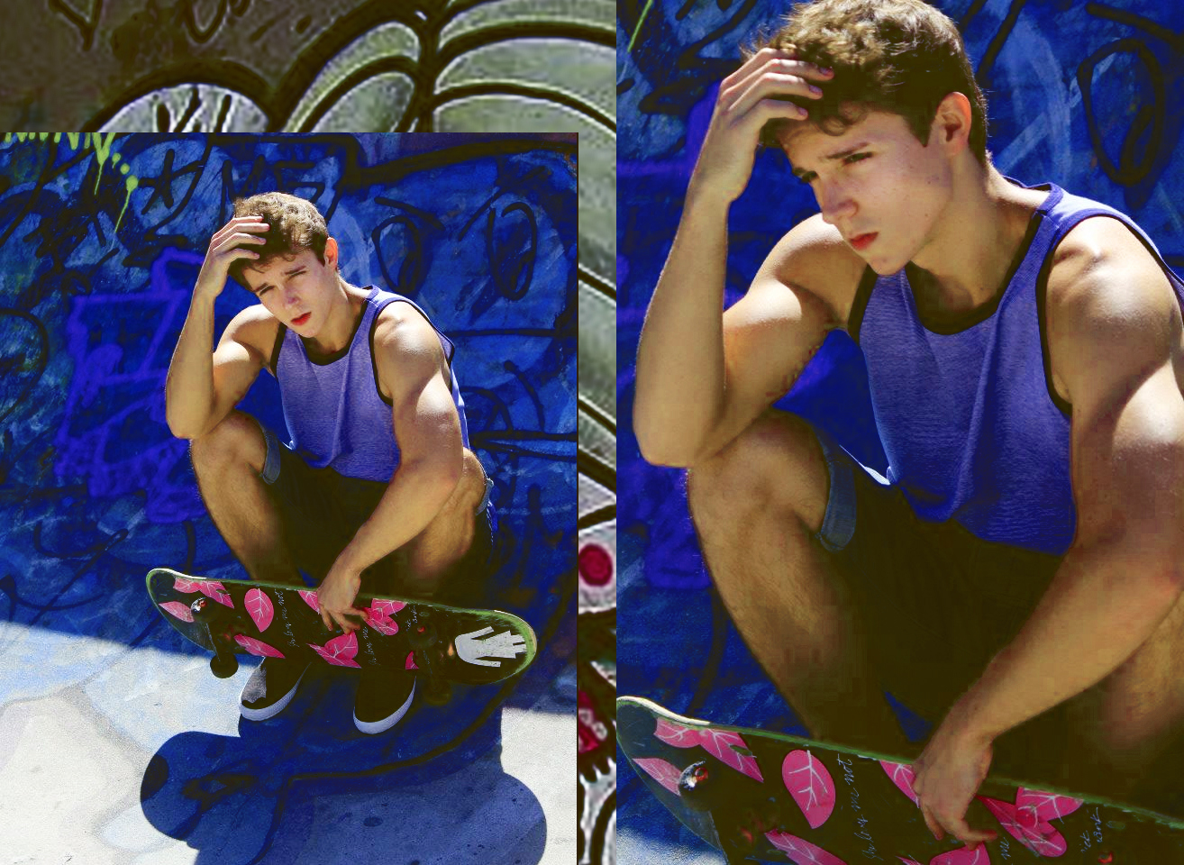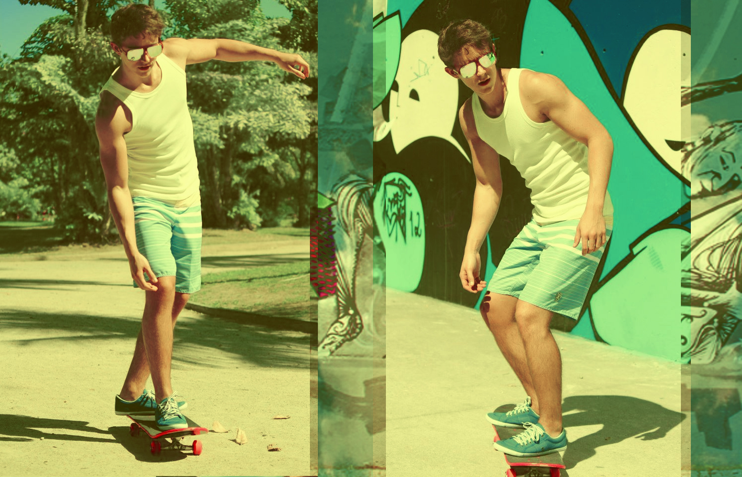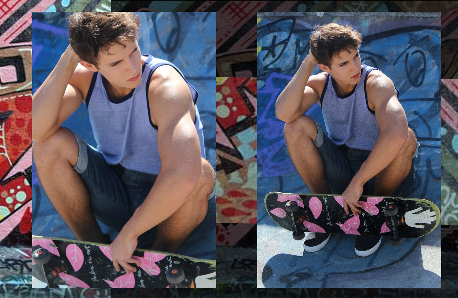 Wonderfully colorful shoot by photographer Carlos Sales featuring stunning Brazilian skateboarder and model, Gabriel Arievilo.