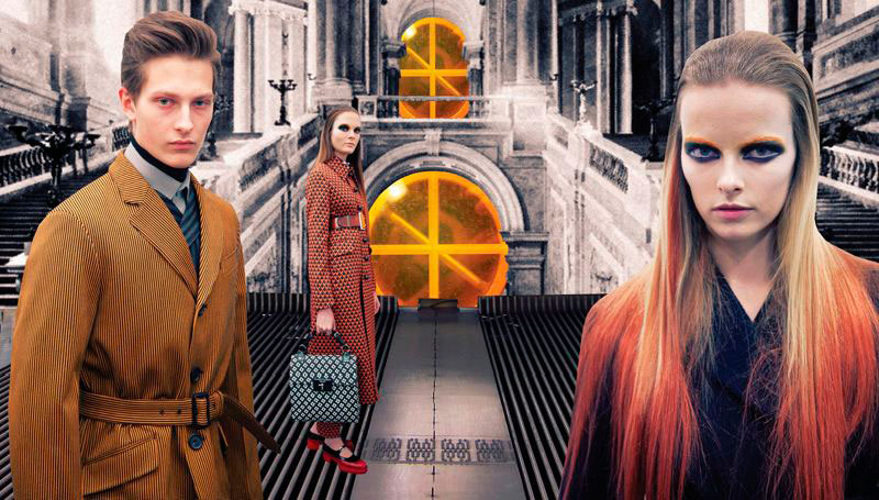 Prada have just released their “Real Fantasies” Lookbook for the Fall/Winter season. The lookbook is a creative pop-up scrap book of inspiration behind the collection, featuring the models wearing the most stand out designs from the collection. Prada projects the future of fashion as a retrofitted past. Set within a dystopian society of machines and jagged geometries, genetically perfected clones roam digital colonies. Each scene depicts an antiquated landscape within a galaxy of characters engrossed in oblique and possibly deviant power dynamics.