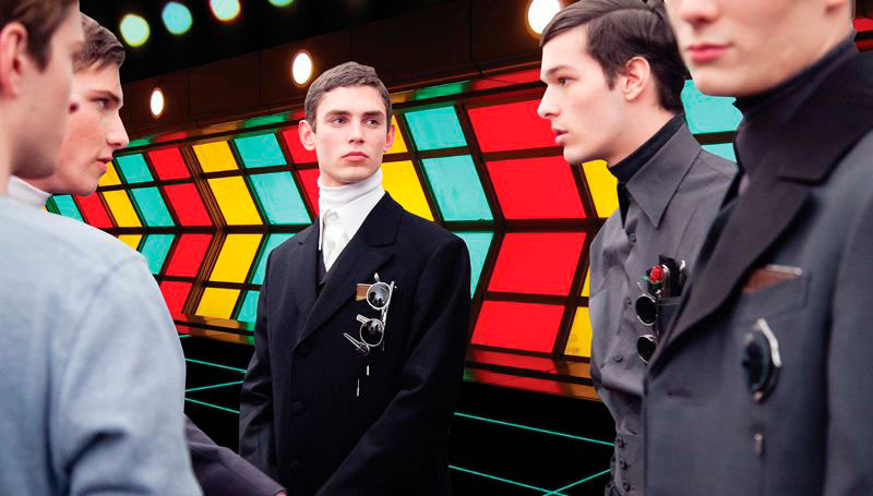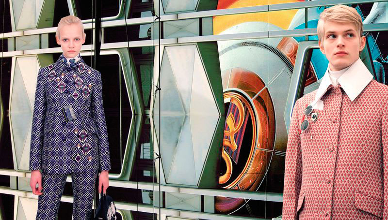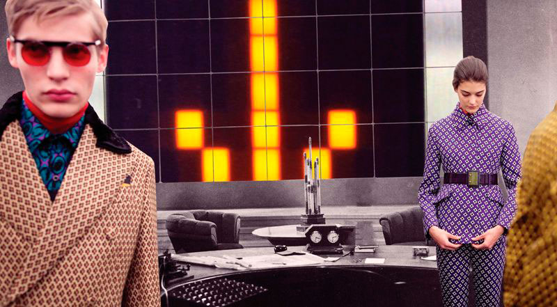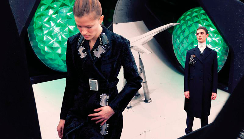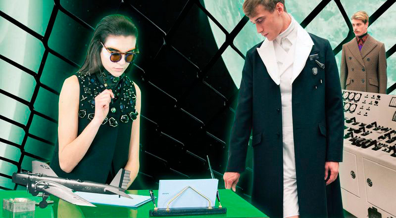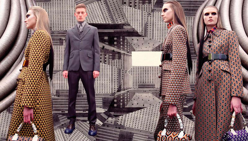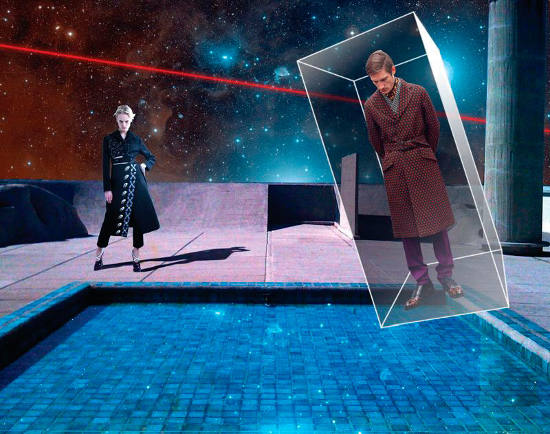 Prada have just released their “Real Fantasies” Lookbook for the Fall/Winter season. The lookbook is a creative pop-up scrap book of inspiration behind the collection, featuring the models wearing the most stand out designs from the collection. Prada projects the future of fashion as a retrofitted past. Set within a dystopian society of machines and jagged geometries, genetically perfected clones roam digital colonies. Each scene depicts an antiquated landscape within a galaxy of characters engrossed in oblique and possibly deviant power dynamics.