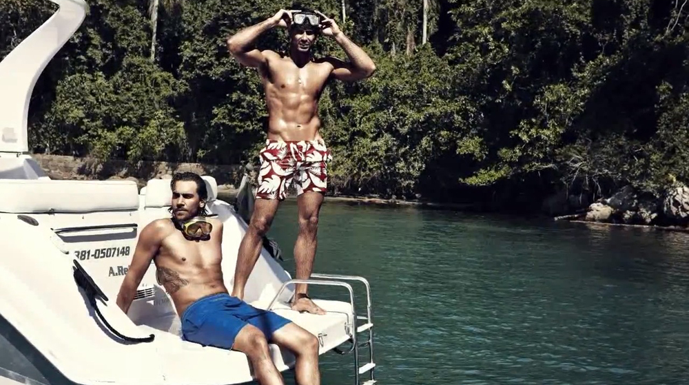 Stunning Brazilian models, Lucas Gil and Anderson Dornelles (long hair), team up for the sexy ‘Estivanelli’ Summer 2013 menswear campaign.