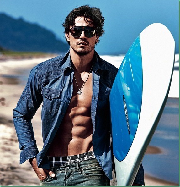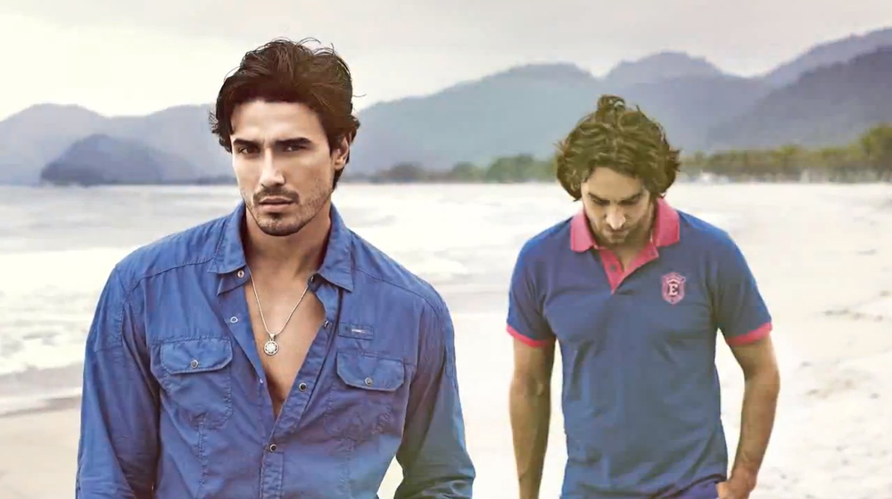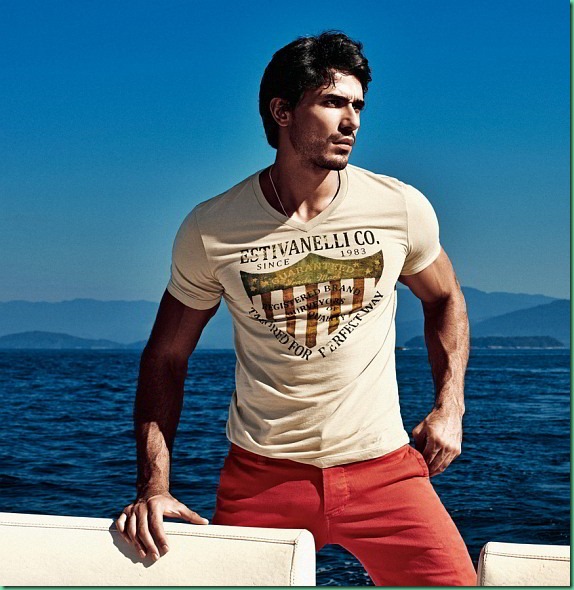Stunning Brazilian models, Lucas Gil and Anderson Dornelles (long hair), team up for the sexy ‘Estivanelli’ Summer 2013 menswear campaign.