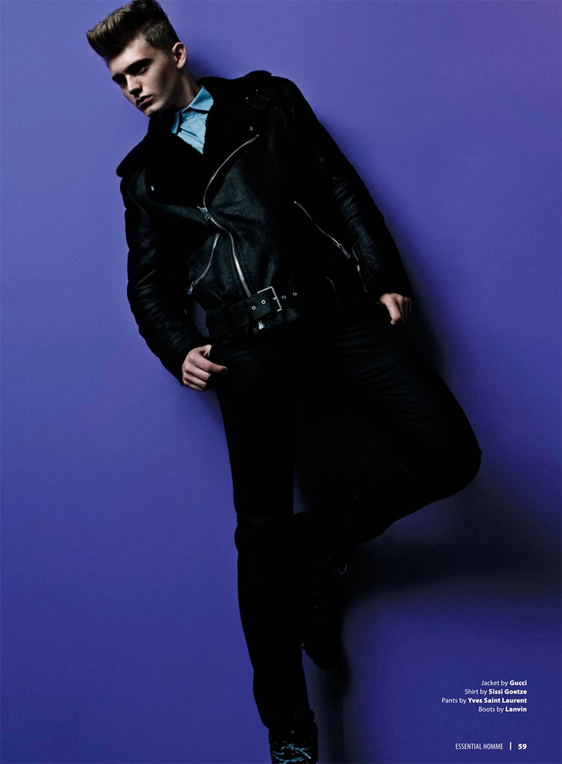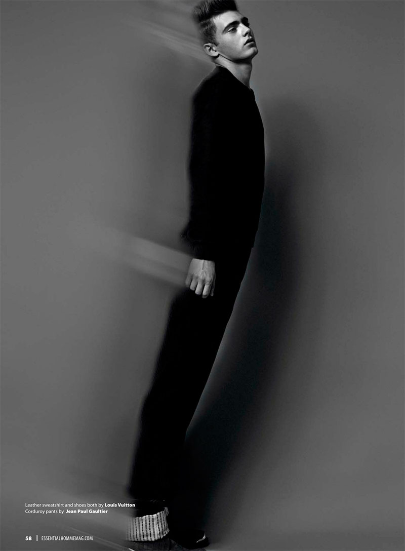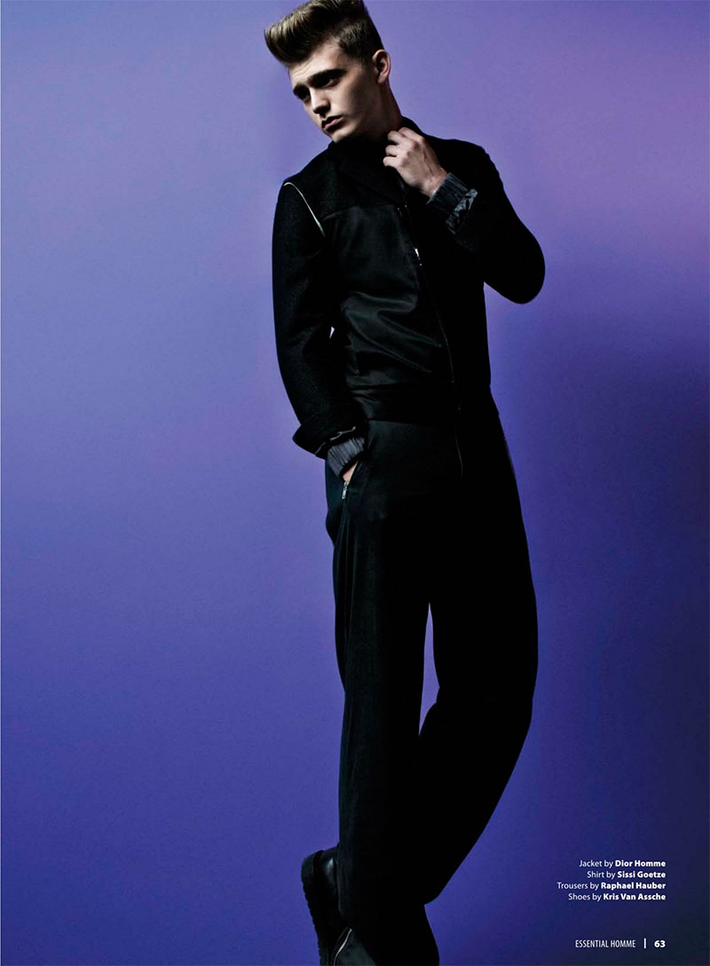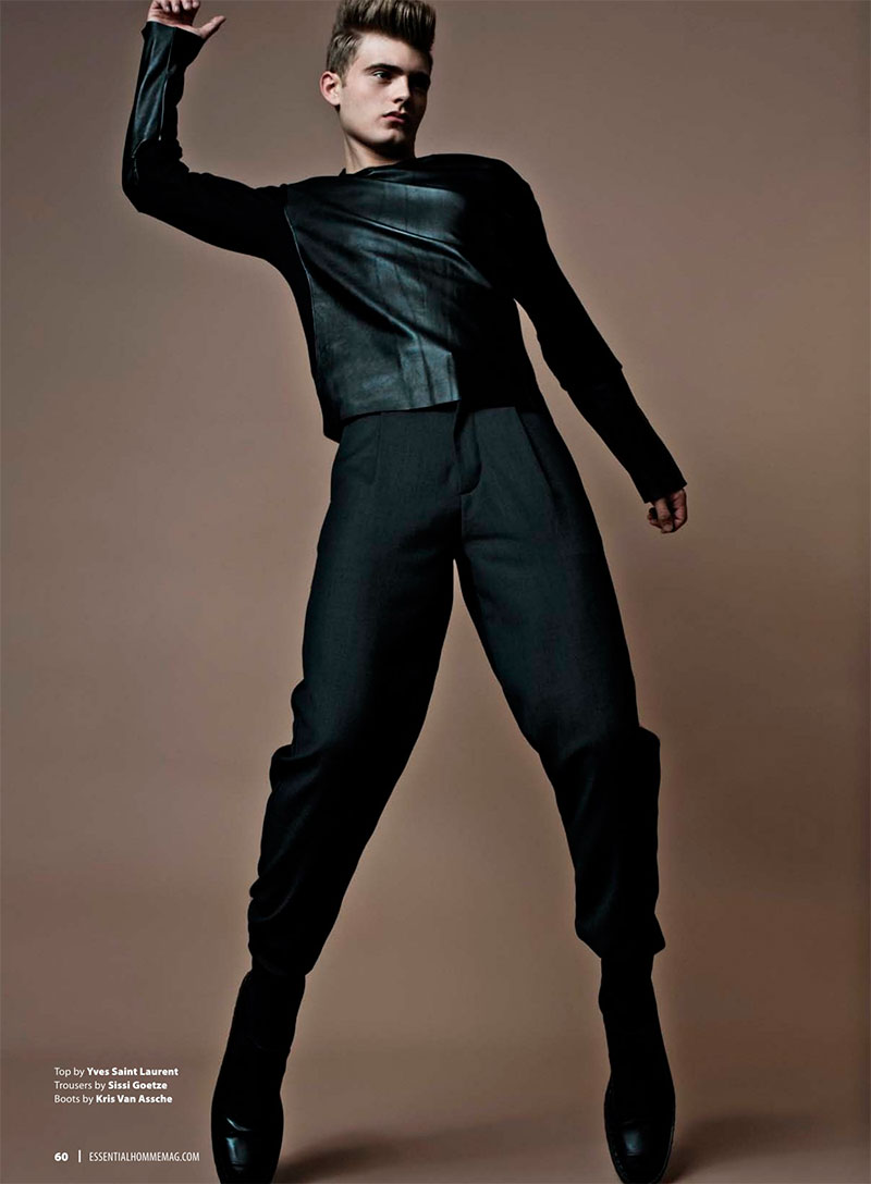 Tom Lander shot by Arcin Sagdic and styled by Bodo Emile with pieces from Jean Paul Gaultier, Issey Miyake, Dior Homme and more, for Essential Homme.