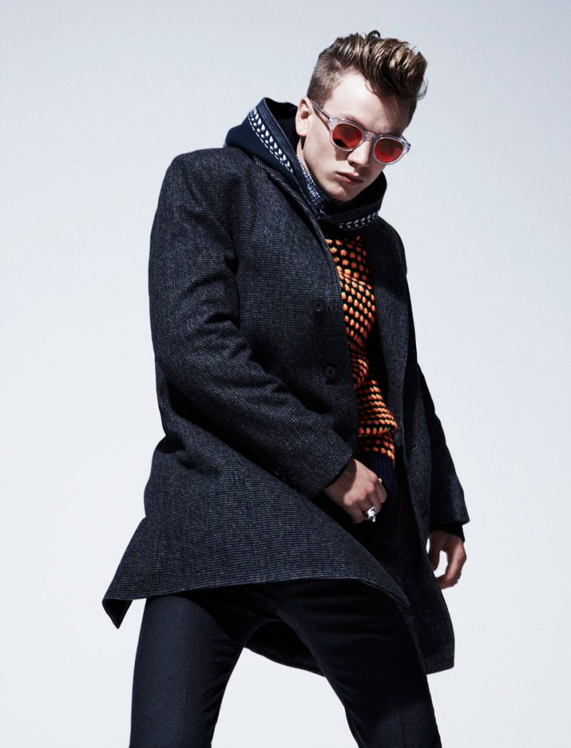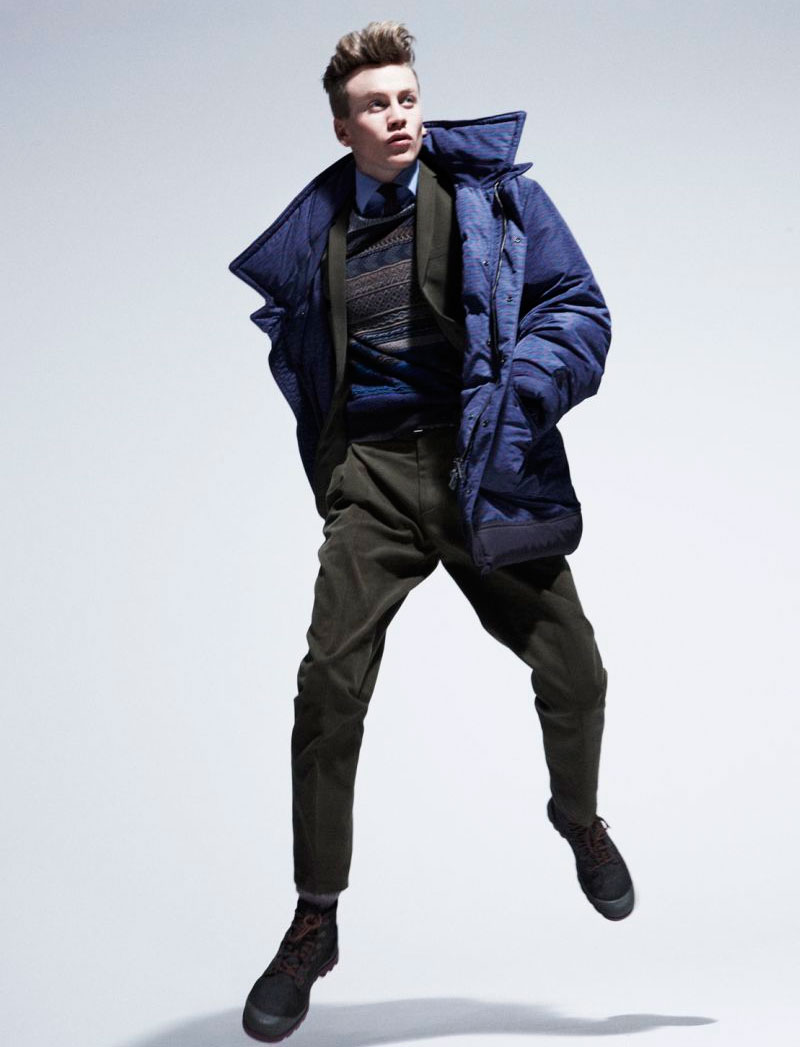Sid Ellisdon shot by Takay and styled by Nicholas Galletti with pieces from Kenzo, Prada, and more, for L’Express Styles.