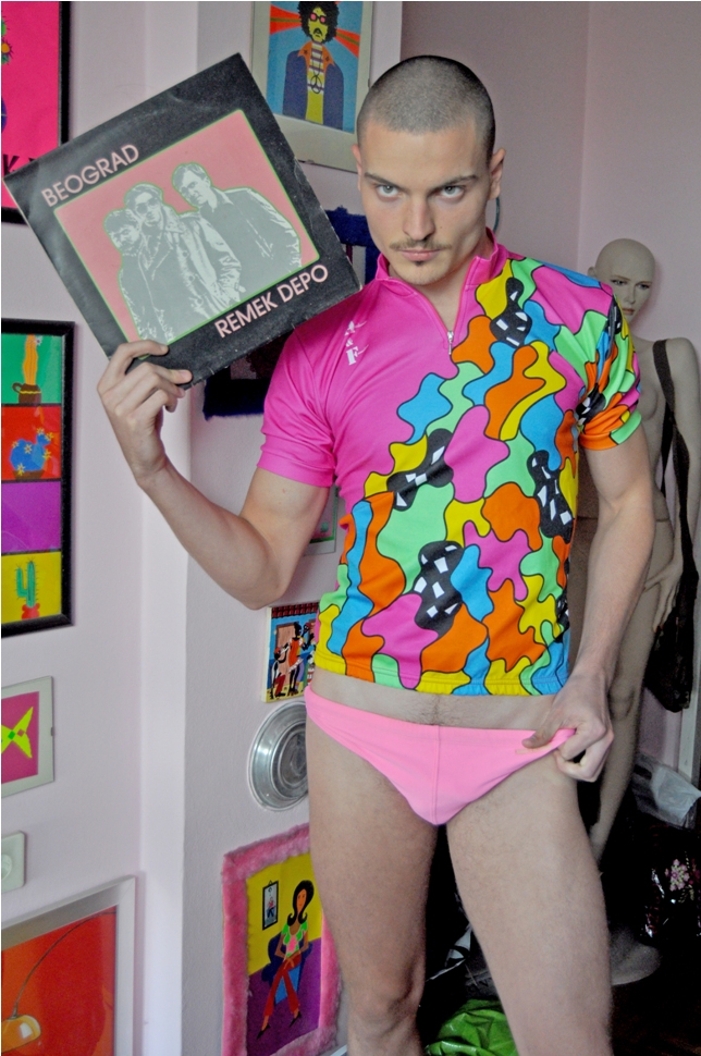 80´s, colorful non-sense, Lp’s, this is the way exactly where Srdjan Šveljo express his own idea about 80s, captured male model Filip Georgiev, cover: Aleksandar Topic for URBANLOOK. All exclusive for Fashionably Male.