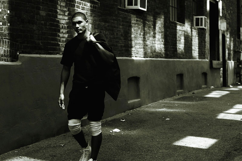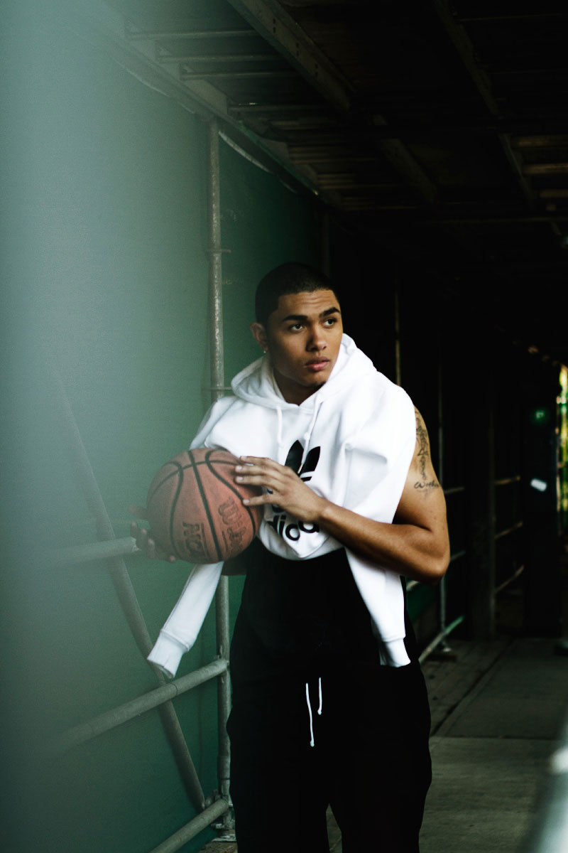 Justin Rock photographed by Paolo Azarraga and styled by Bobby Bowen with pieces from Adidas, Robert Geller, Supreme, American Apparel, Jeremy Scott for Adidas, and more, in exclusive for Fucking Young! Online.