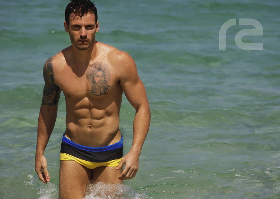 Photographer Ricardo Cunha to the seaside in this beautiful new campaign for Rocha Trendwear Summer 2013 Collection, featuring sexy Brazilian models Diego Possadas (right), Luciano Rocha (middle), and Samuel Vieira (tattooed).