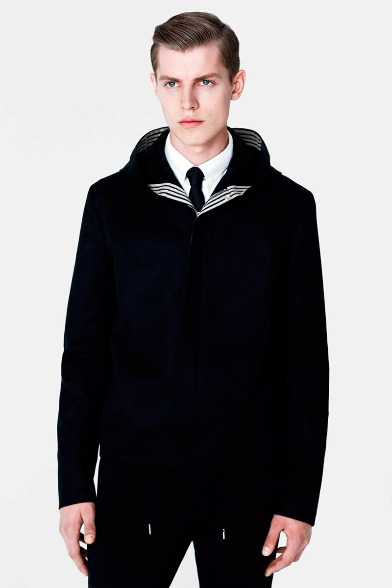 It draws inspiration from the cadets of a modern Naval Academy. His is a young man, determined, always paying attention to etiquettes… He wears two-button formal clothes or elegant double-breasted jackets… The slim-cut shirts have a French collar… Essentials the epaulets! He’s very rigorous. Loves the black-and-white contrast and chooses the classic navy blue for all occasions. In his spare time he opts for leather bomber jackets and clear-cut trenches. A touch of originality? The blazer with the new military style’s hood… Ready to go!