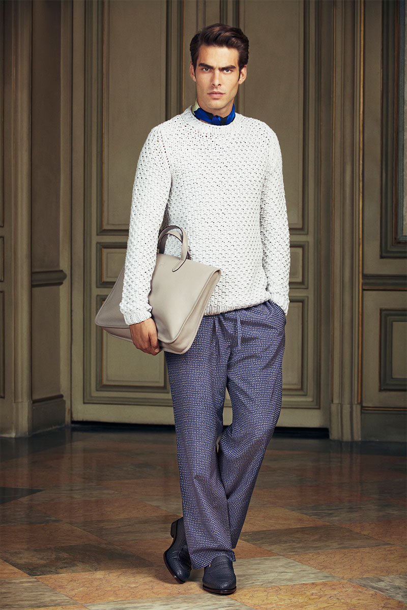 Elsewhere in the collection there’s a peacoat in cotton with goatskin details; a merino knit cardigan combined with perforated suede; tailoring in exclusive wool/silk mixtures; knitwear in the finest cashmere and merino wool; and blazers in a double-faced unlined cashmere also trimmed with leather specially developed to be light enough to wear in summertime.