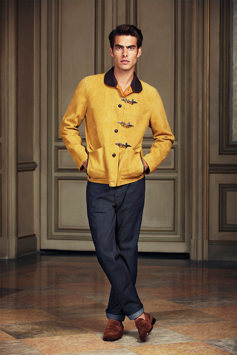 Elsewhere in the collection there’s a peacoat in cotton with goatskin details; a merino knit cardigan combined with perforated suede; tailoring in exclusive wool/silk mixtures; knitwear in the finest cashmere and merino wool; and blazers in a double-faced unlined cashmere also trimmed with leather specially developed to be light enough to wear in summertime.