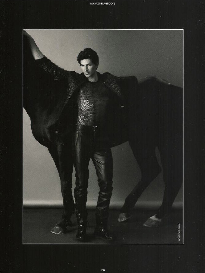 Daniel Aleksić black and white fashion portrait by Ferran Casanova in Barcelona studio