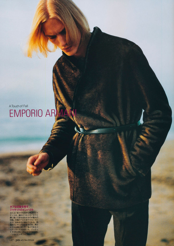 Paul Boche graces de pages of the latest Pen magazine lensed by Syunya Arai and styled by Takafumi Kawasaki with pieces from Emporio Armani’s Fall/Winter 2012 collection.