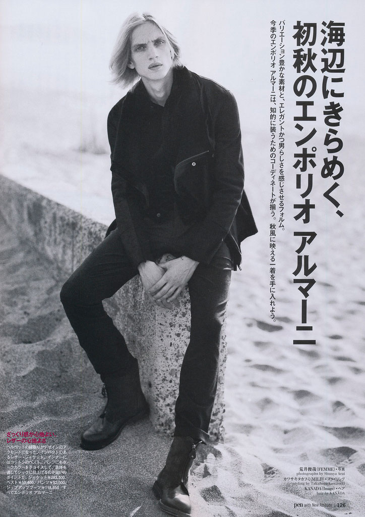Paul Boche graces de pages of the latest Pen magazine lensed by Syunya Arai and styled by Takafumi Kawasaki with pieces from Emporio Armani’s Fall/Winter 2012 collection.