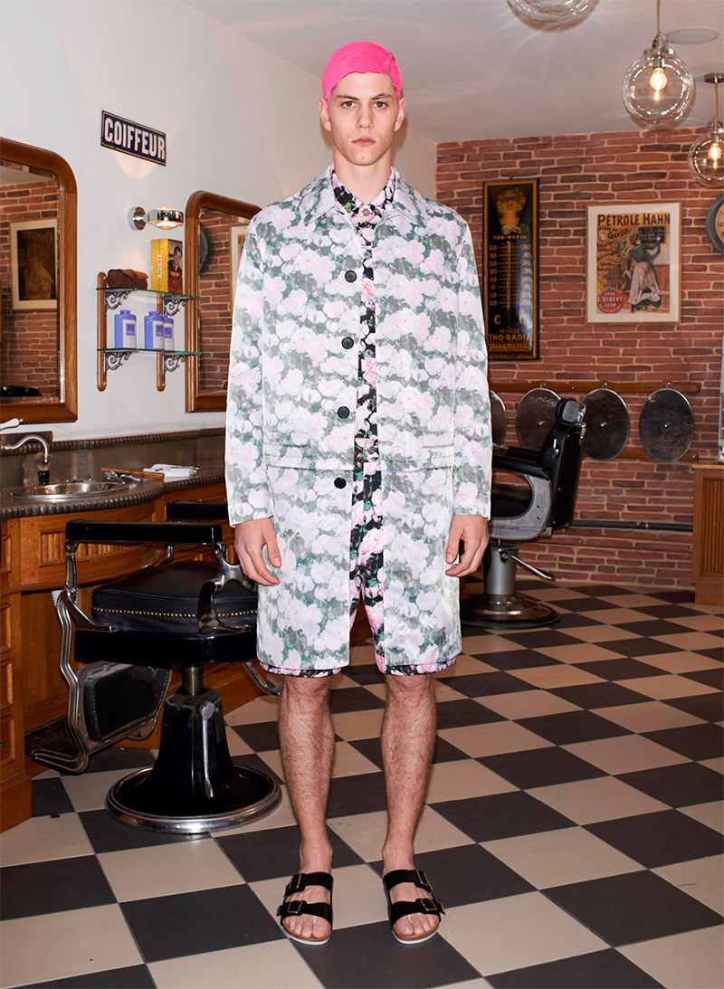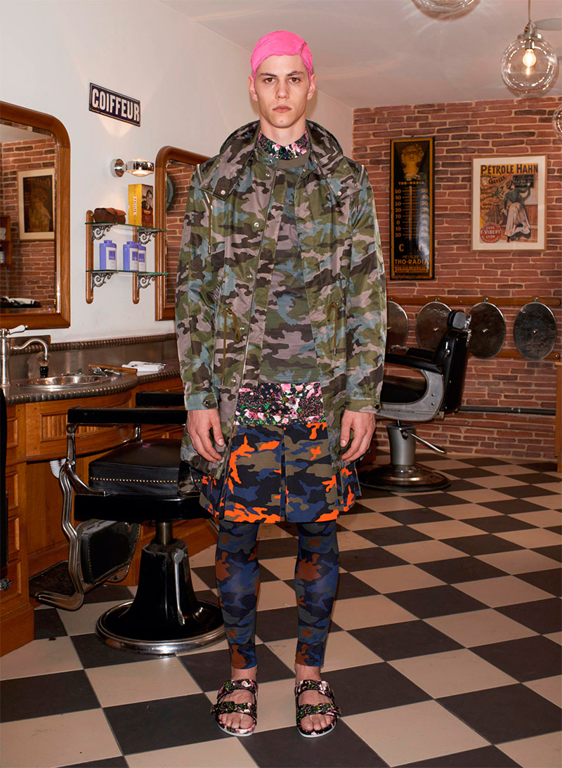 “Favelas 74” sums up Riccardo Tisci’s obsession of the Latin world. It is another expression of streetwear and urban culture. This season he revisits natural elegance and gender blending. Vivid combinations of prints from flowers and camouflage prints to roses and checks offer a new take on the feminine and the masculine. They create joyful patchworks where bright, dark and faded versions interact with each other. Placed prints and intricate cuts reveal graphic compositions.