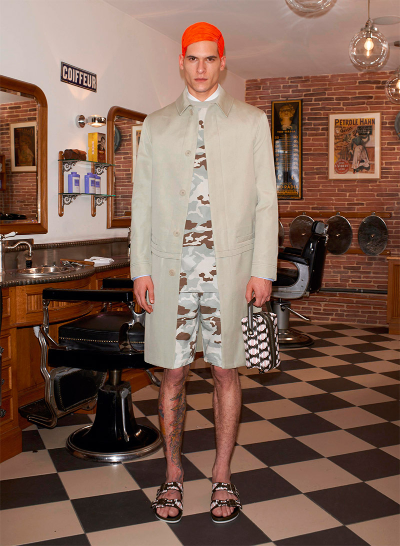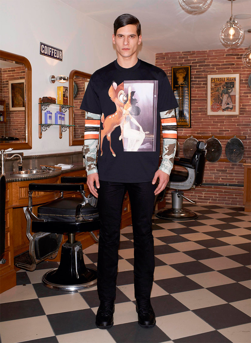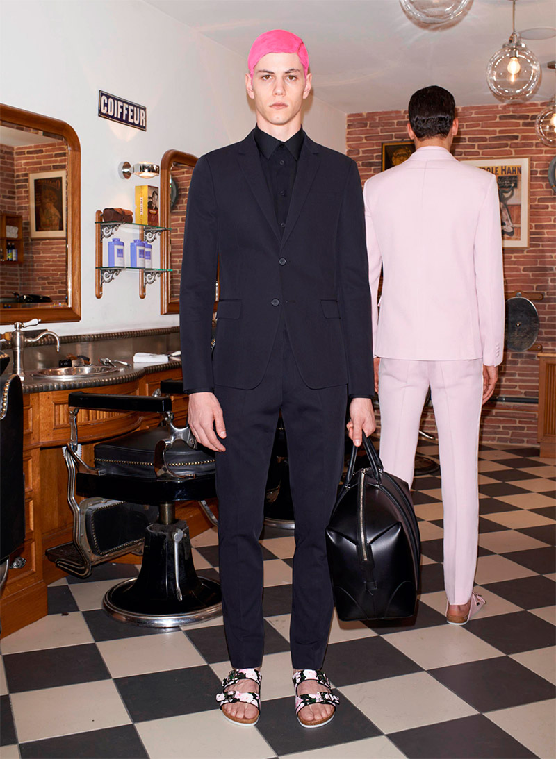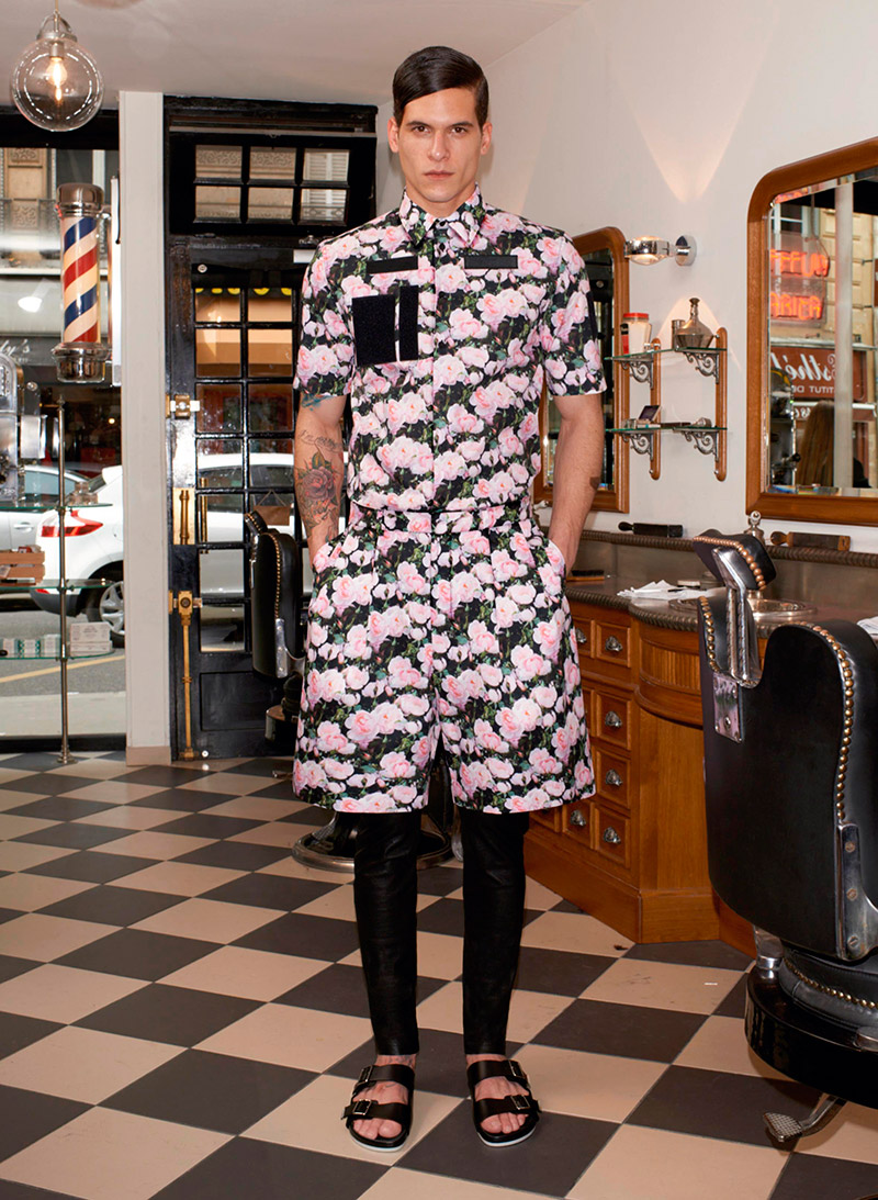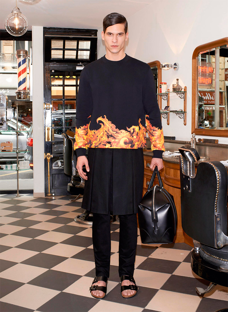 The Spring 2014 pre-collection strengthens Givenchy’s signature male wardrobe. It is infused with a Latin influence for Latin men are not afraid of mixing prints seemingly at odds or layering contrasting pieces making such looks cool and stylish. The silhouette exhales relaxed sportswear and sensual tailoring creating a newfound elegance.