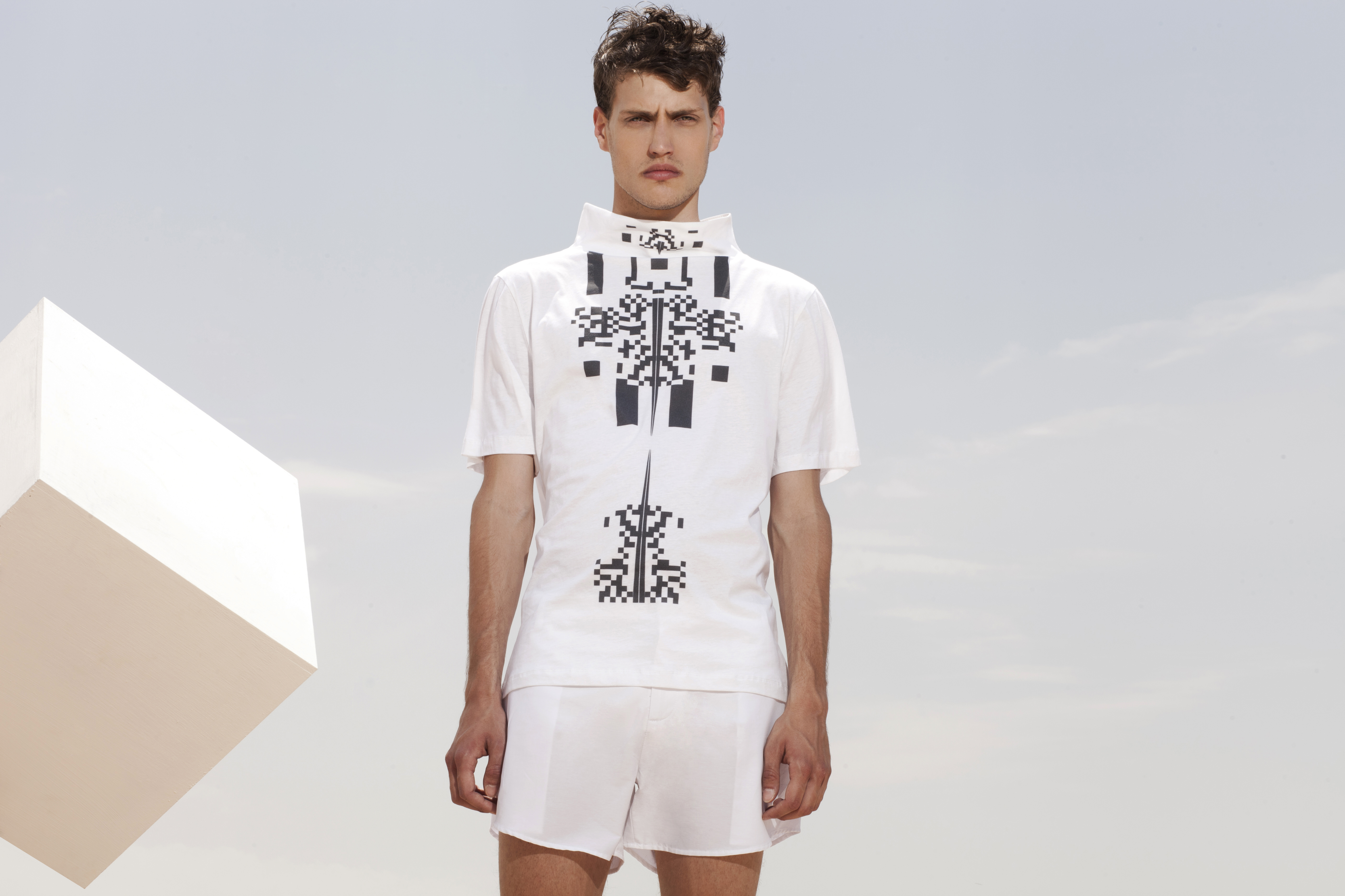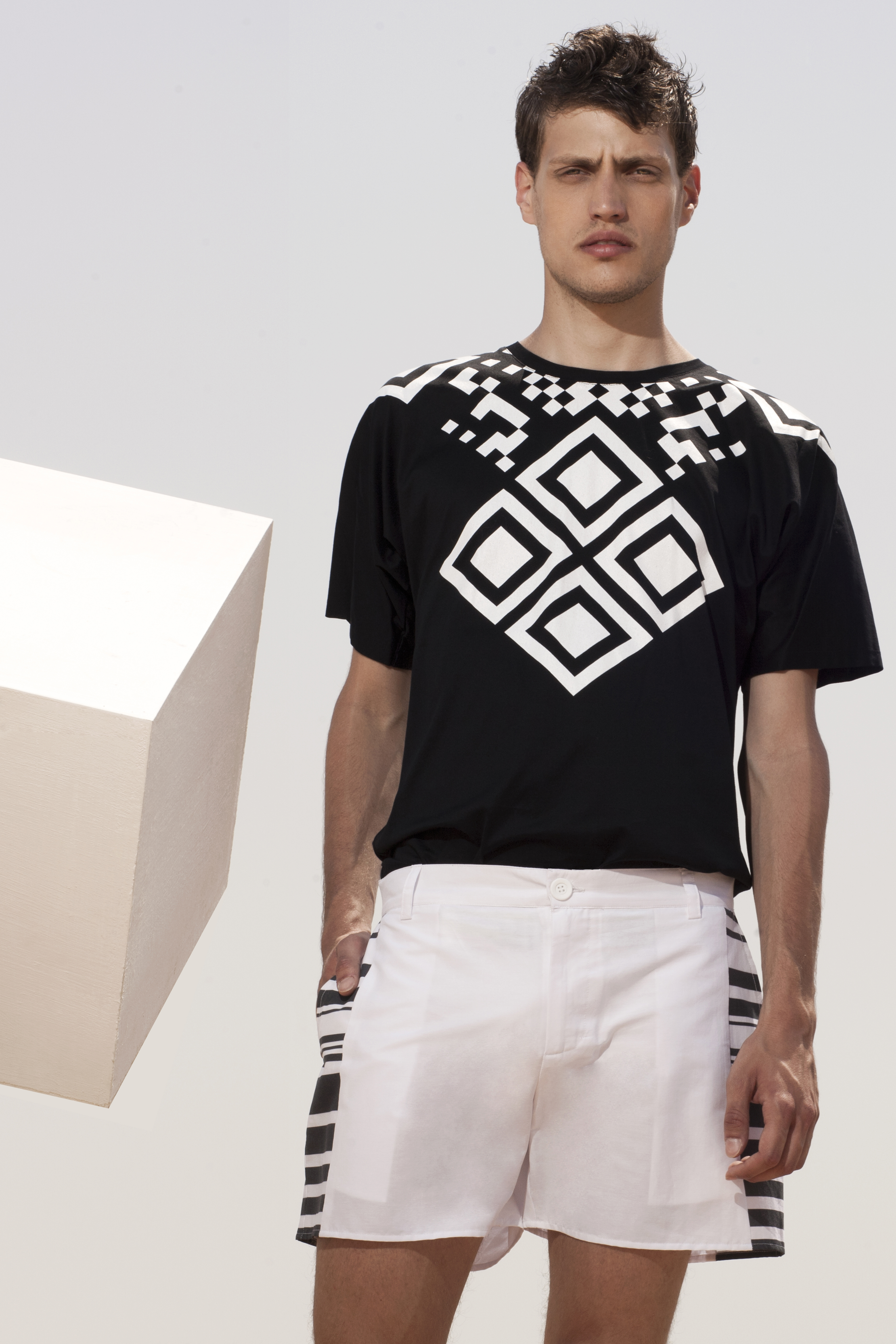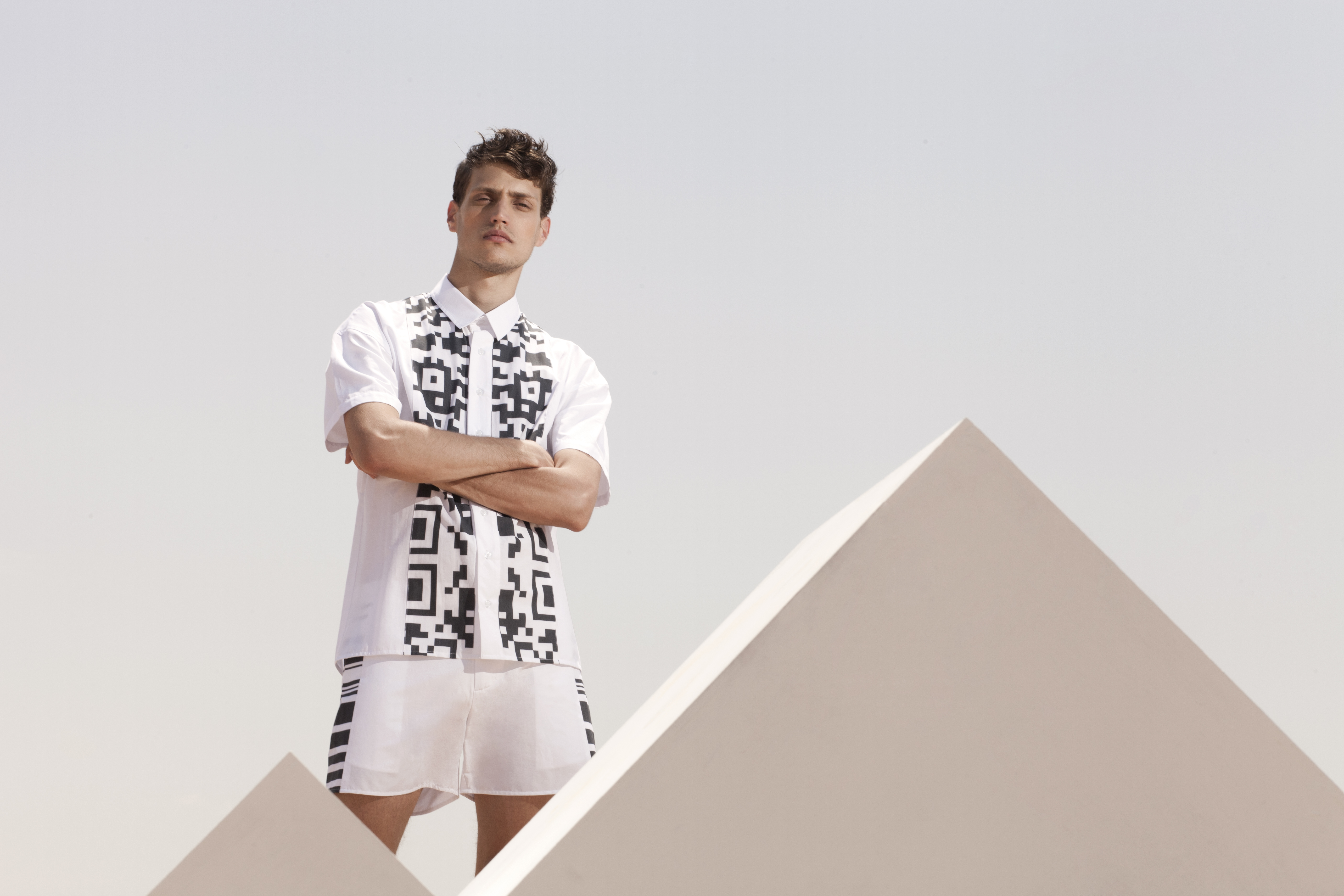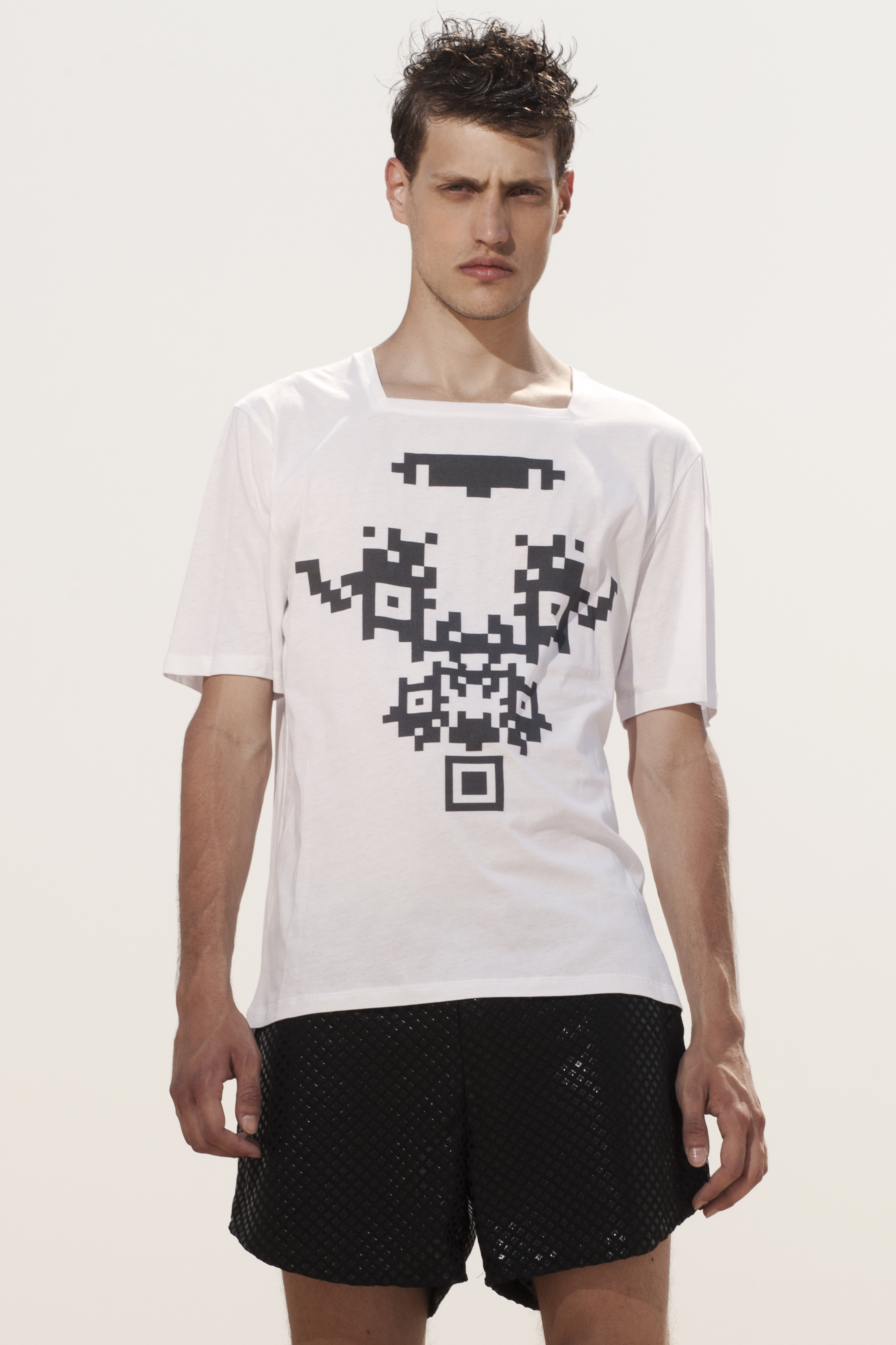 Eliran Nargassi share his debut his collection for S/S 2013 Lookbook, where he entitled “sQuaRe”, basics T-Shirt printed with the QR barcode, aligned with printed Shirts using cool fabrics in all white and black, accessorizing with shorts and sandals. Take a look of this fascinated menswear Collection. I’m obsessive about it.