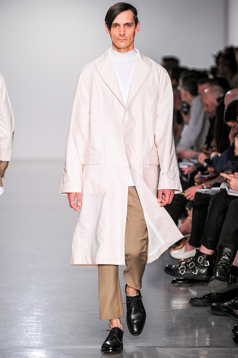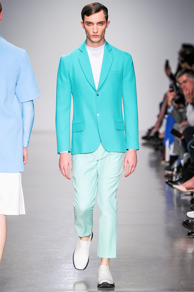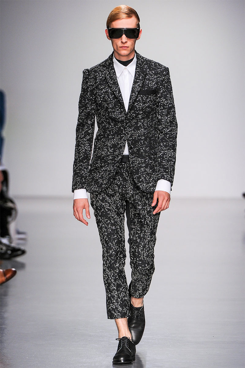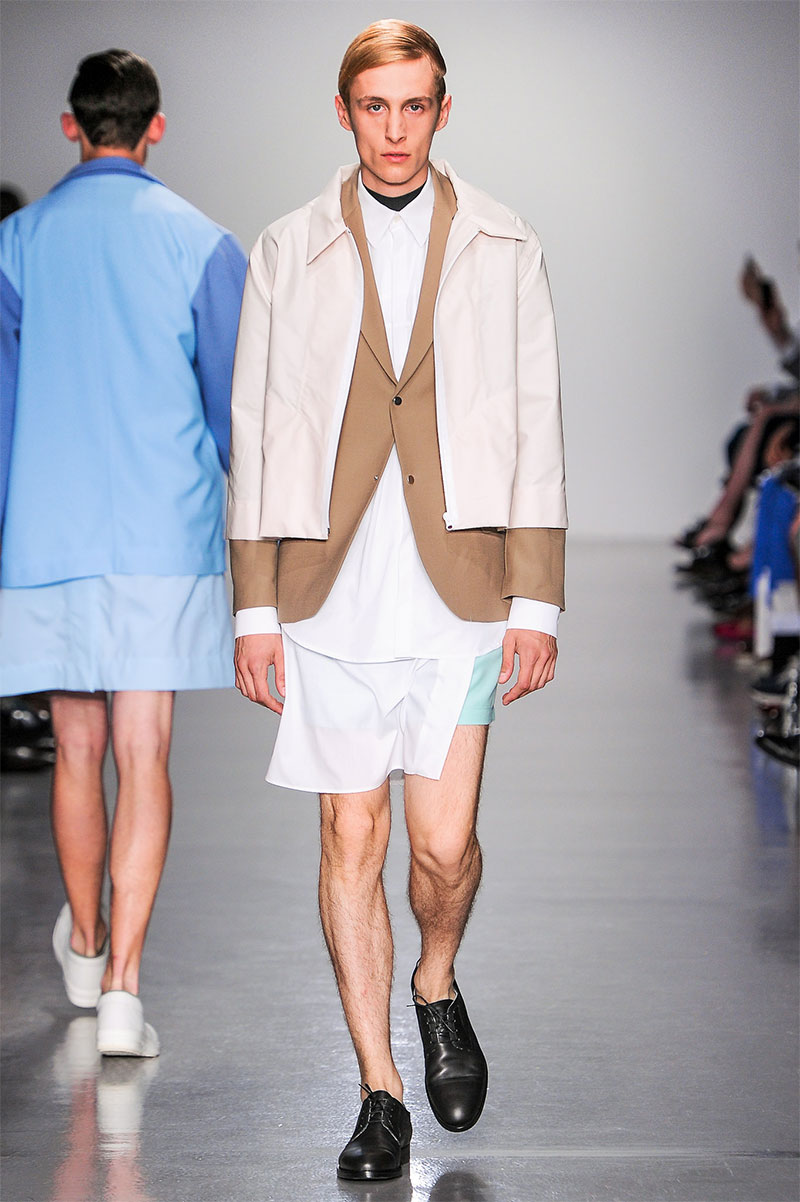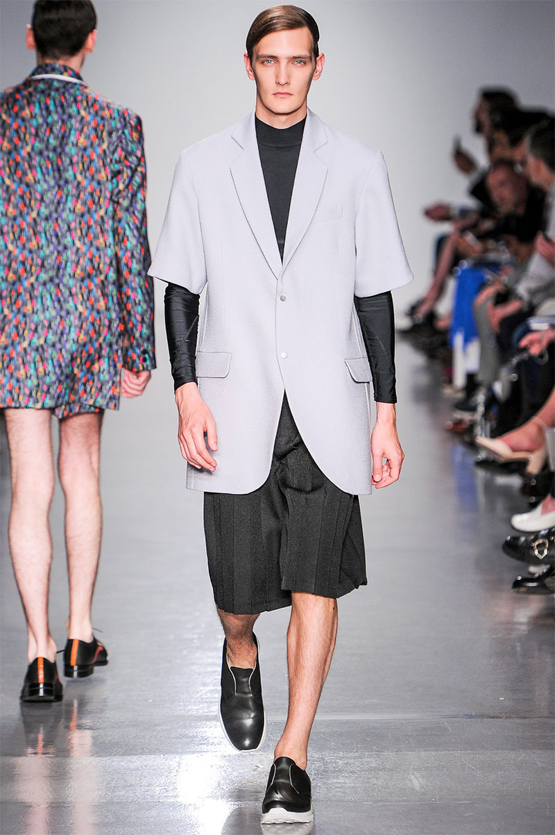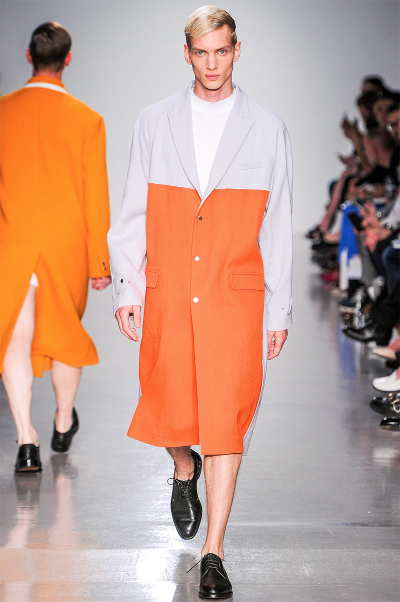 Agi & Sam presented their Spring/Summer 2014 collection during London Collections: Men, featuring a strong emphasis on print and color, oversized silhouettes and some geometric patterns.