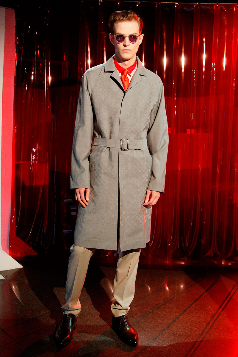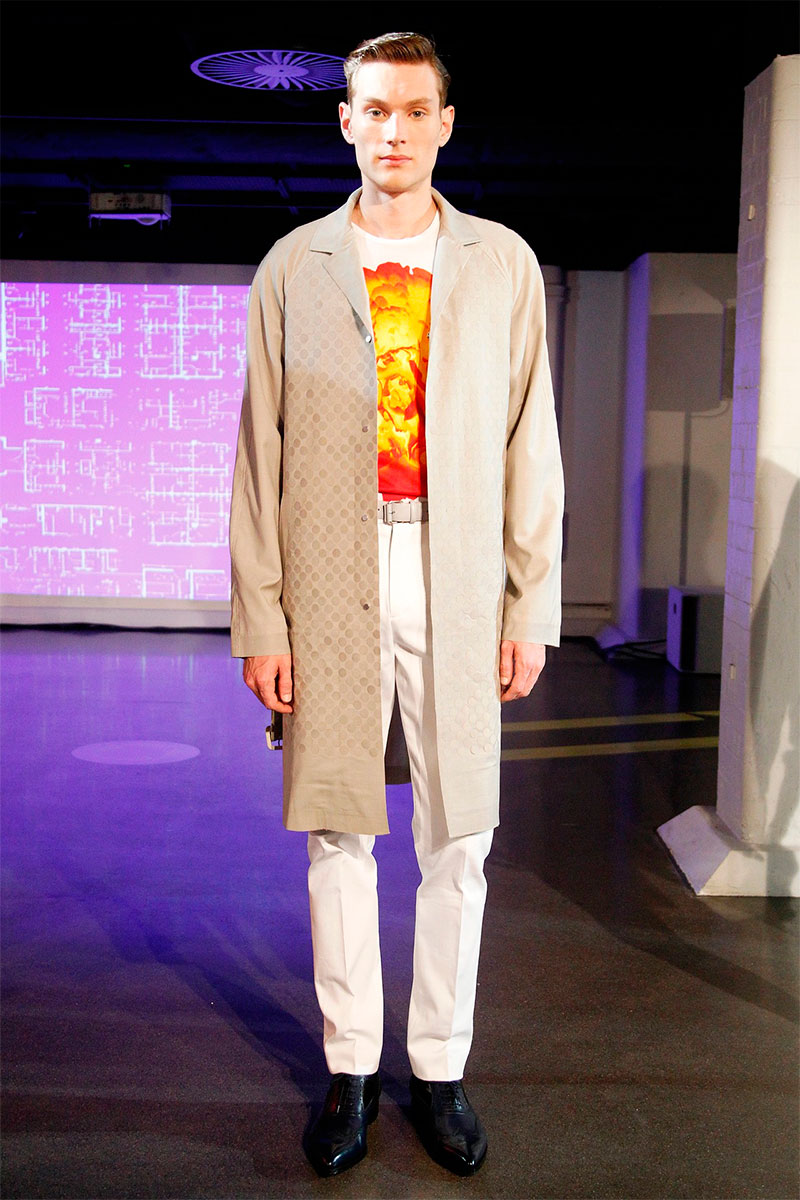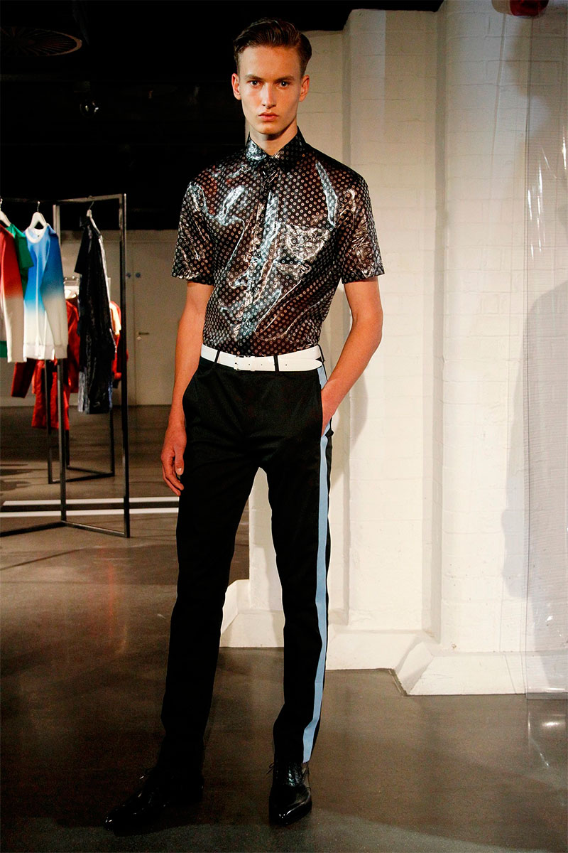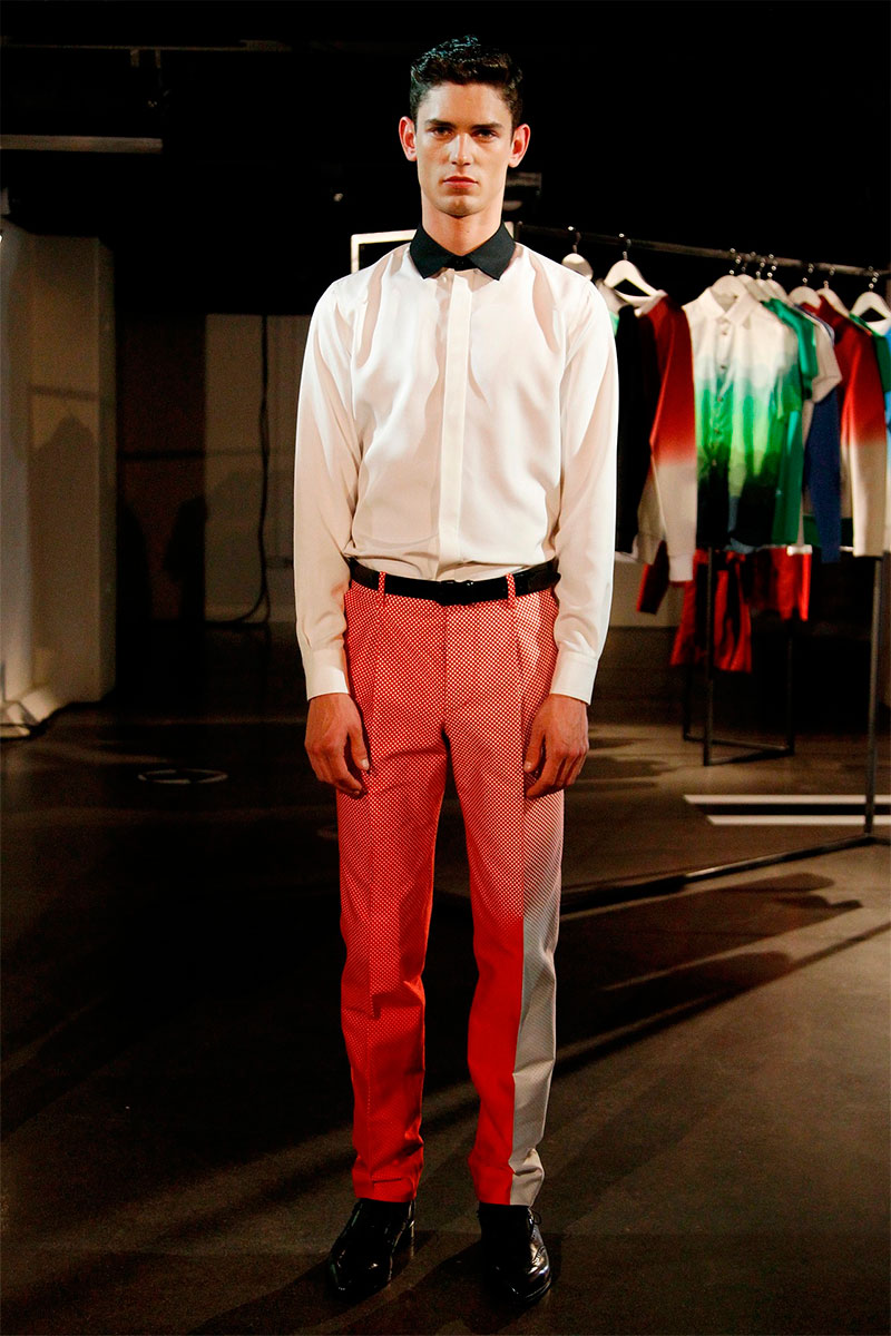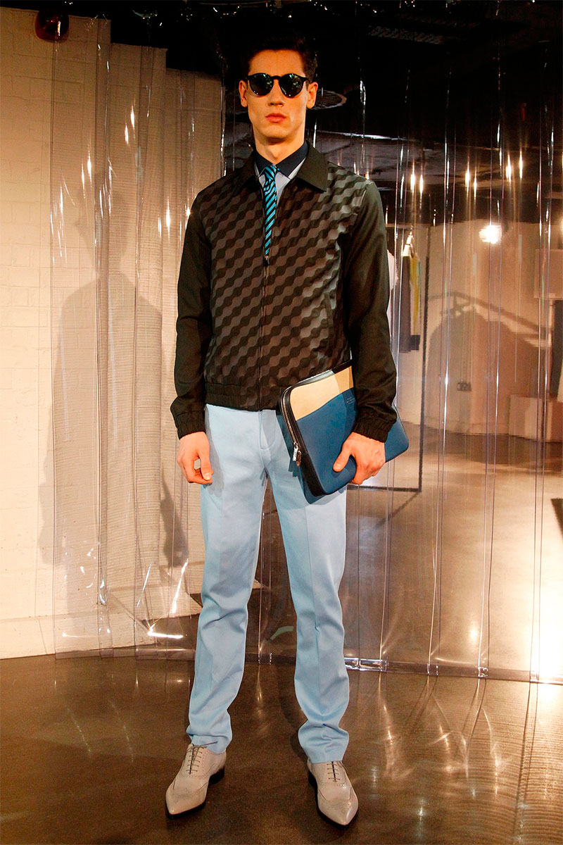 Jonathan Saunders presented his Spring/Summer 2014 collection inspired by the city, during London Collections: Men, featuring a great use of color, prints, stripes, plastics and some color block.