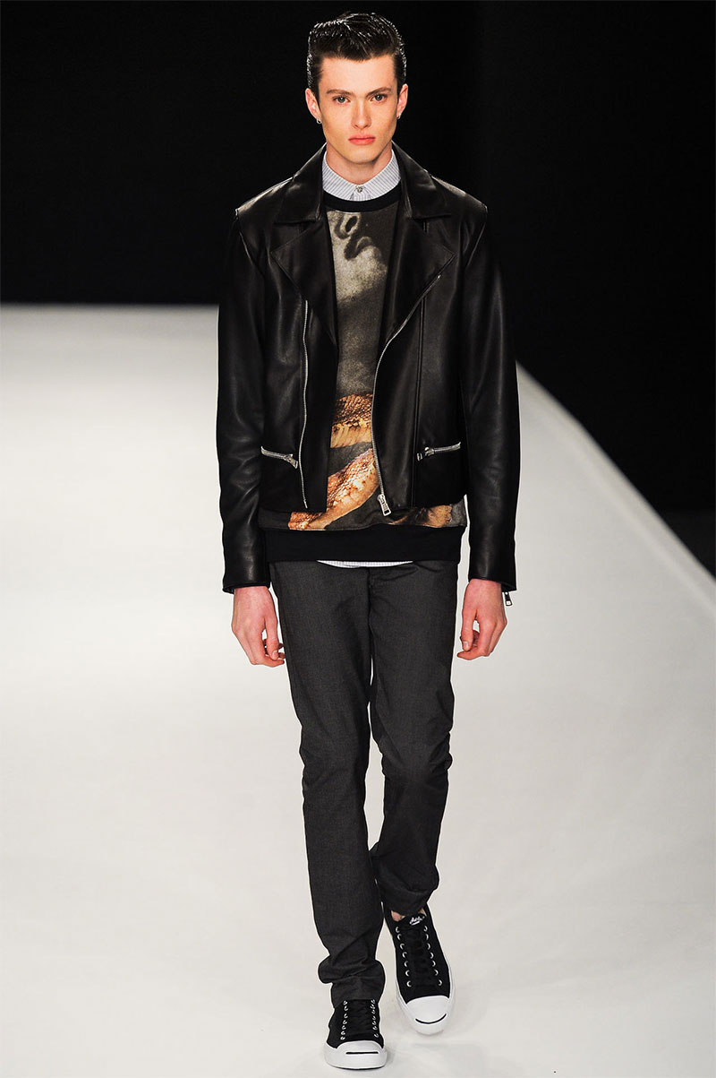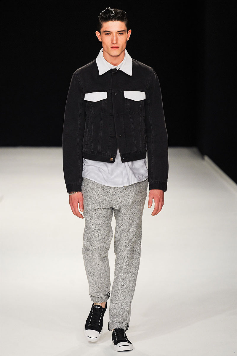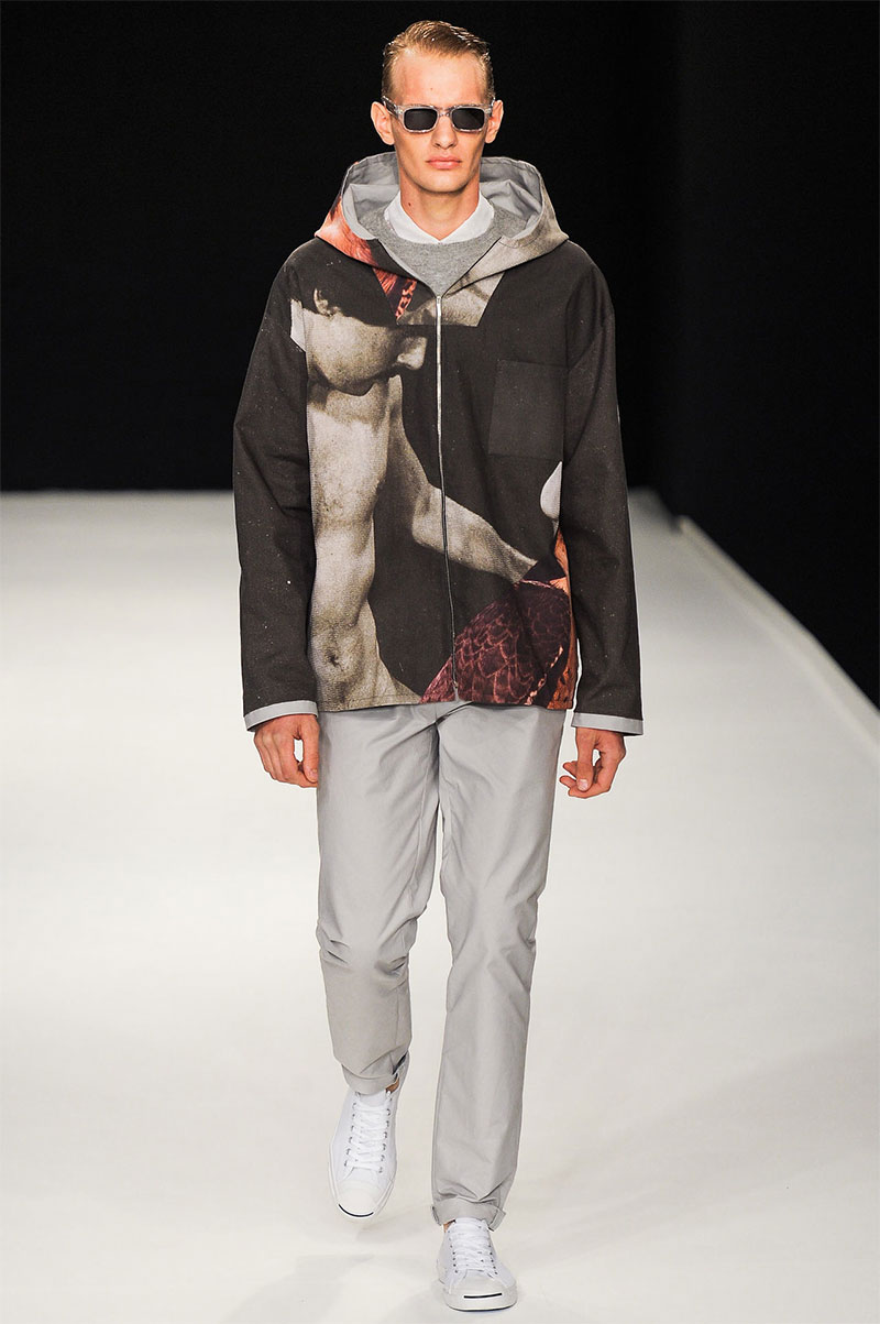 Richard Nicoll presented his Spring/Summer 2014 collection during London Collections: Men.Where he puts big prints on shirts, cool jackets on solid colors.