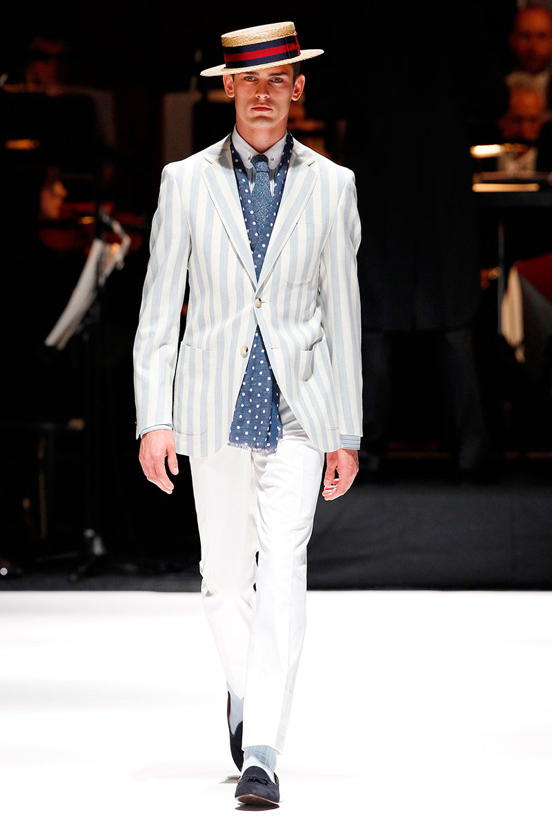 Hackett London Spring/Summer 2014 collection was inspired by René Gruau’s illustrations and Terry O’Neill’s images of Sixties jet setters.