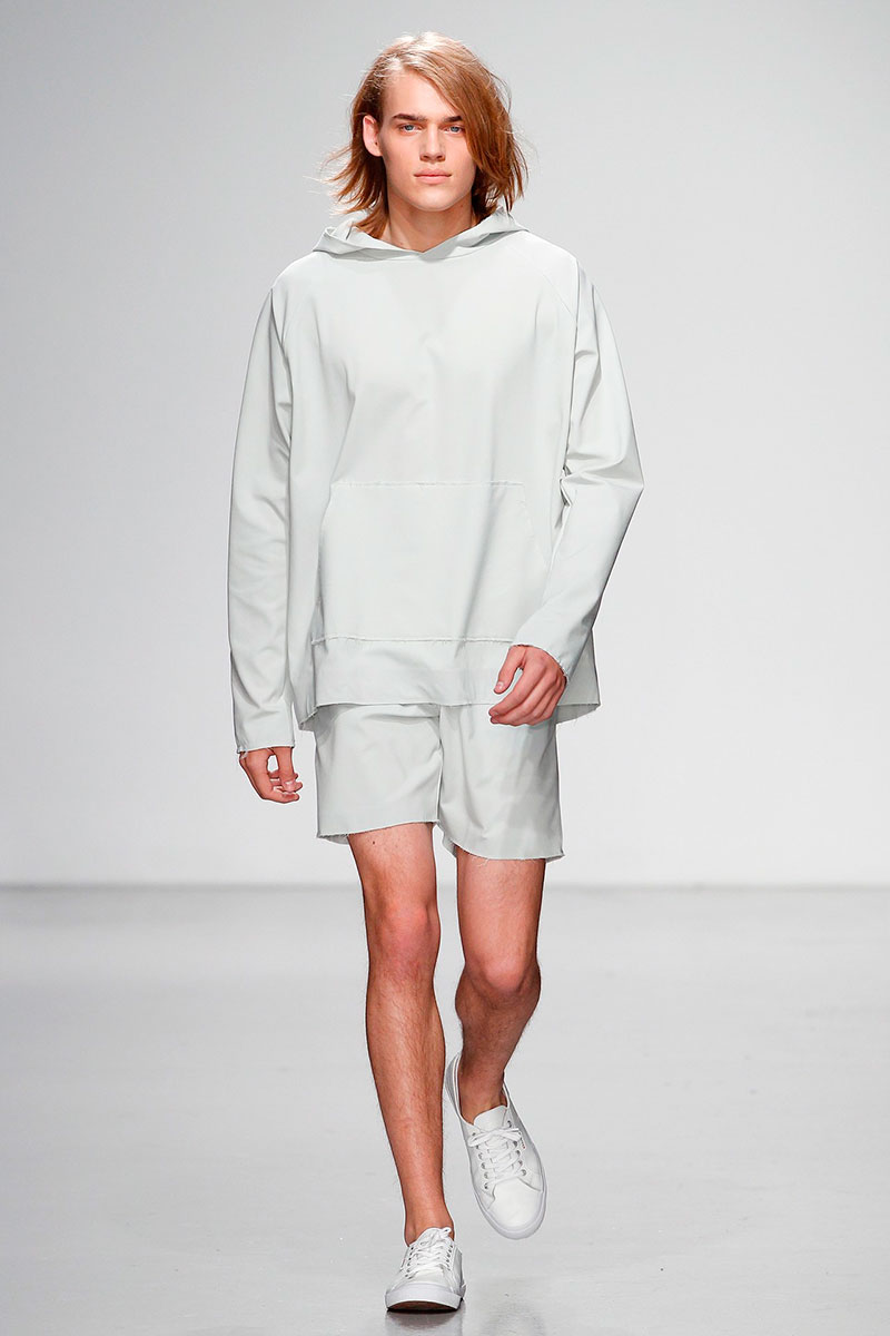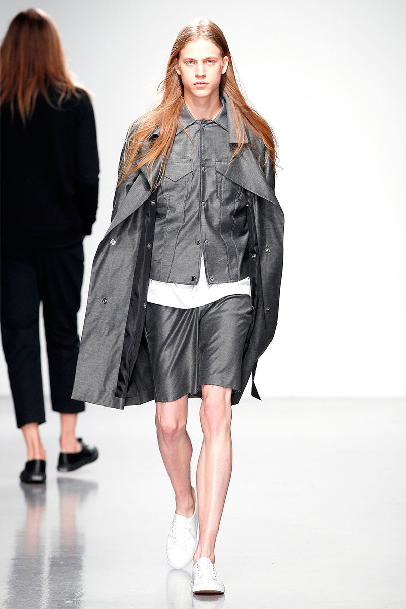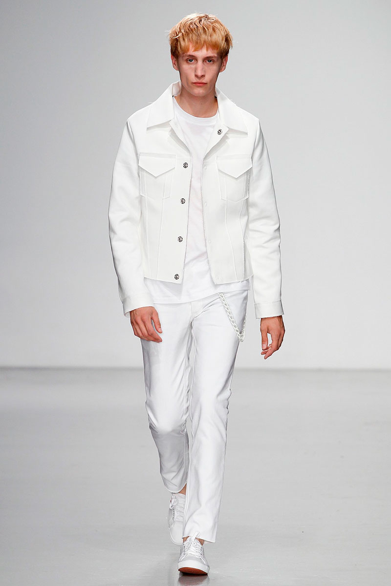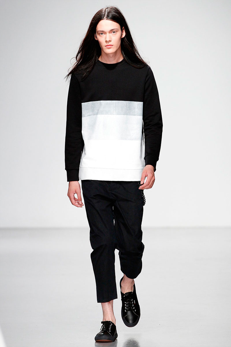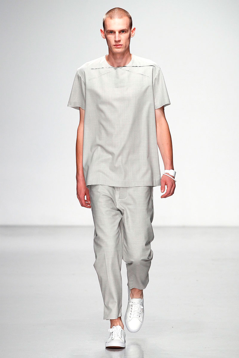Matthew Miller presented his Spring/Summer 2014 collection during London Collections: Men, featuring minimal designs, monochromatic color palette and performance art.