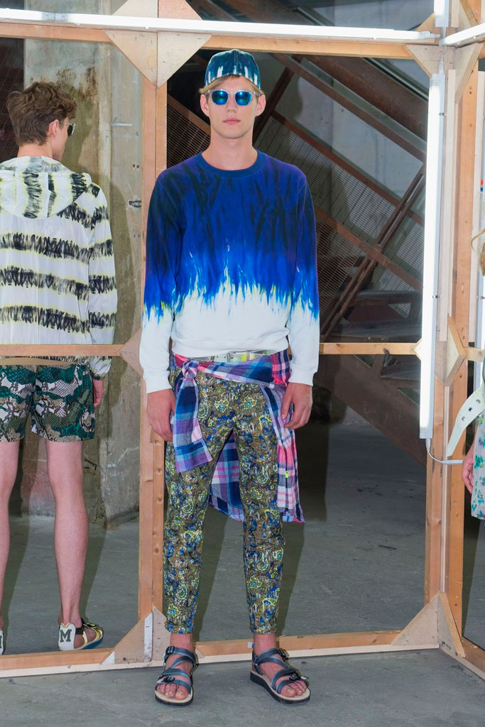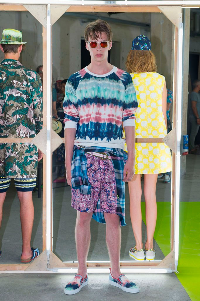 MSGM unveiled its Spring/Summer 2014 collection during Pitti Uomo. The youthful collection featured relaxed silhouettes, bleached and acid-washed colors.