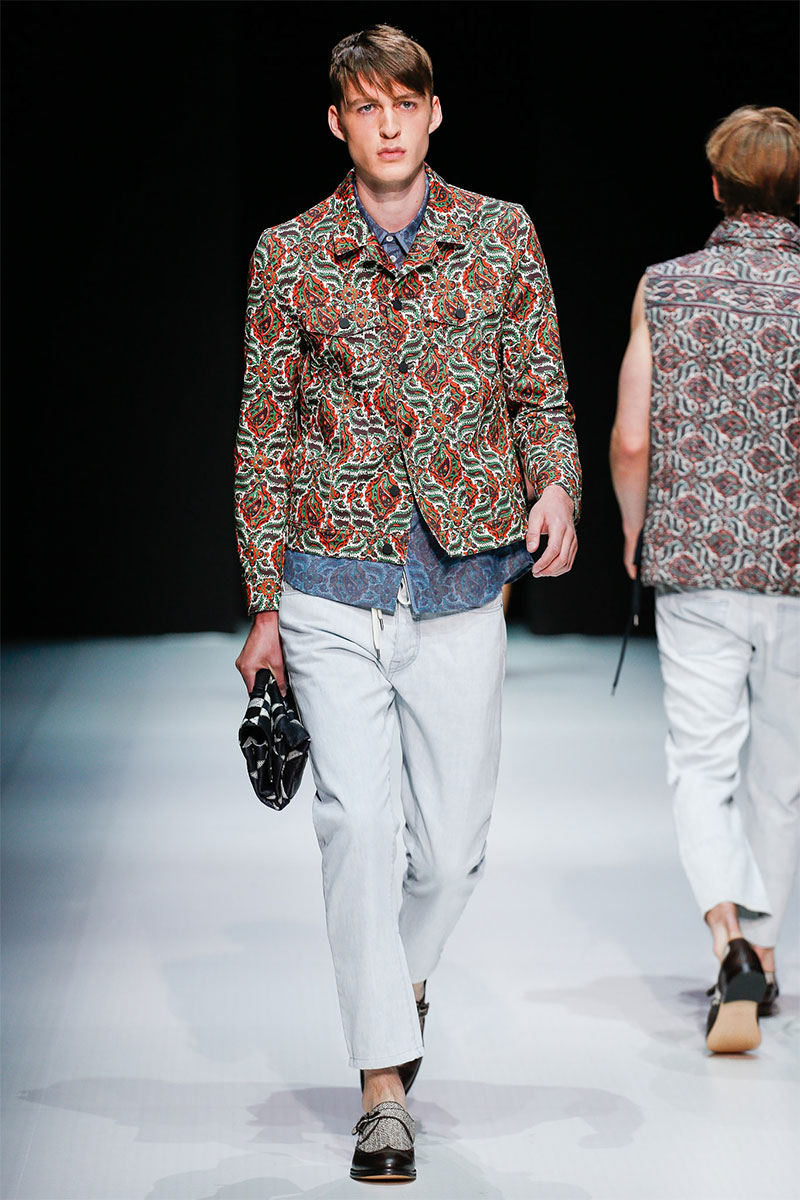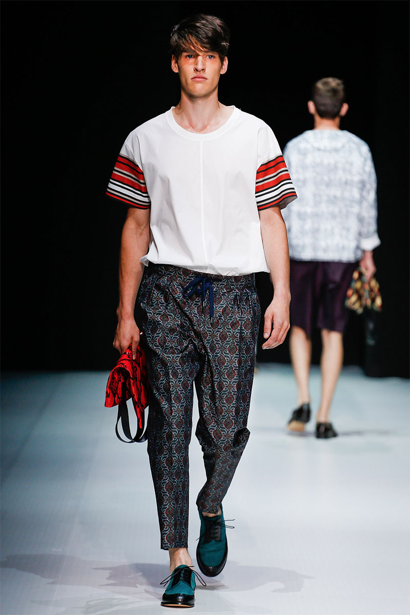 Andrea Pompilio presented his Spring/Summer 2014 collection during Milan Fashion Week, featuring a modern and relaxed silhouette, beautiful and exuberant prints, patterns and great tailoring.