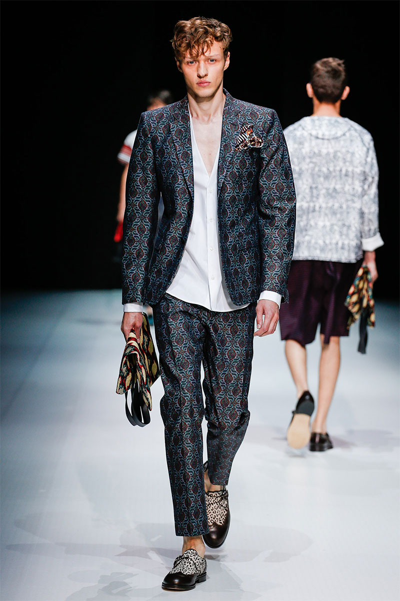 Andrea Pompilio presented his Spring/Summer 2014 collection during Milan Fashion Week, featuring a modern and relaxed silhouette, beautiful and exuberant prints, patterns and great tailoring.